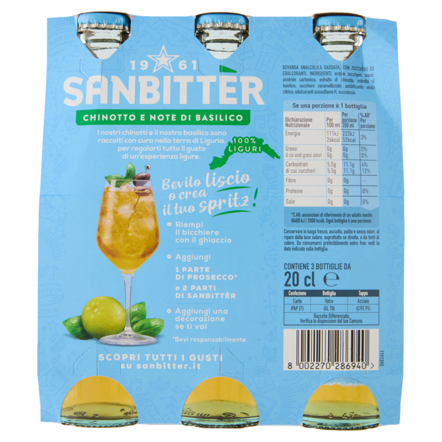 Sanbittèr, Chinotto e note di Basilico, Aperitivo Analcolico - 3 x 200ml