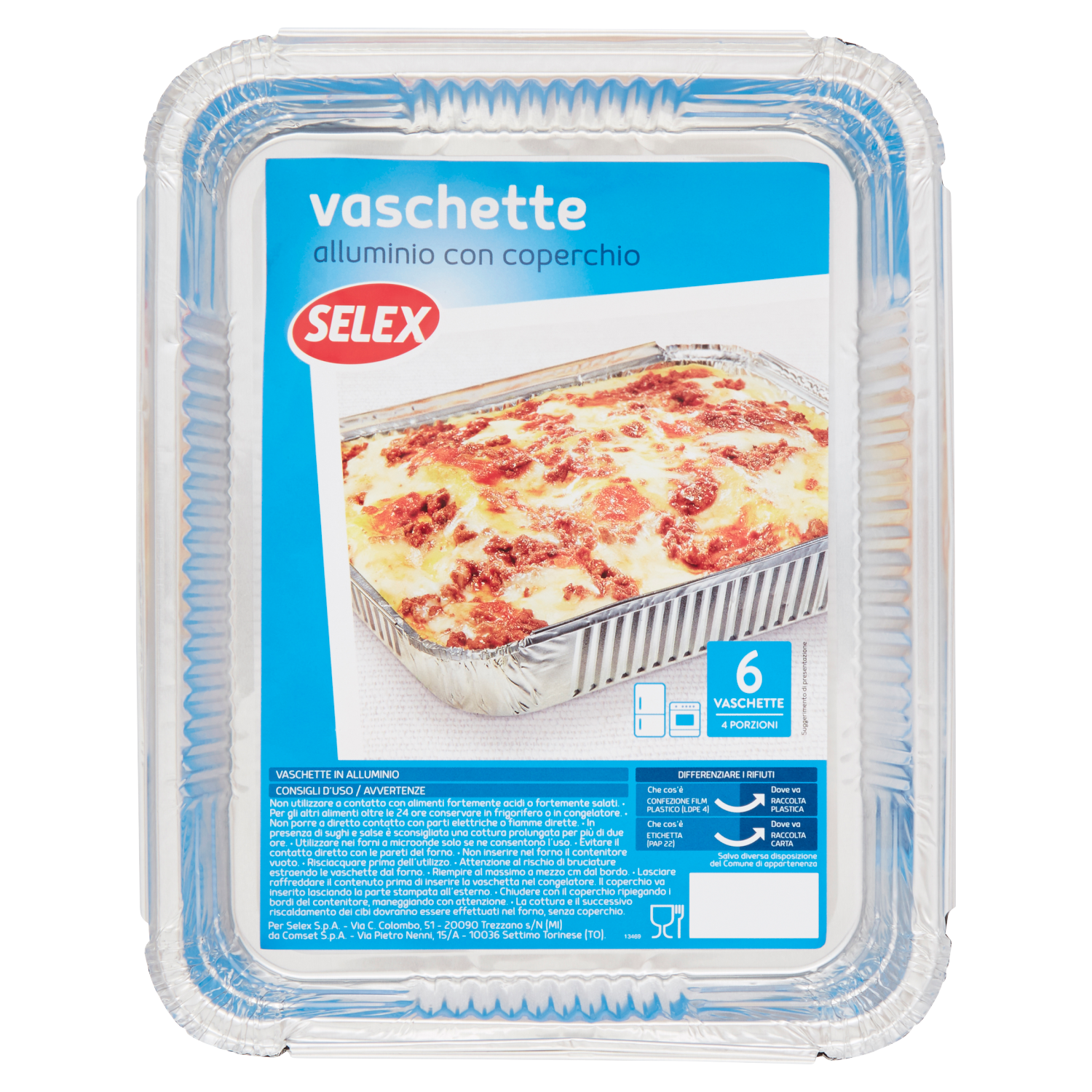 Selex Contenitore in Alluminio con Coperchio 22x17x3,5 cm 6 pezzi