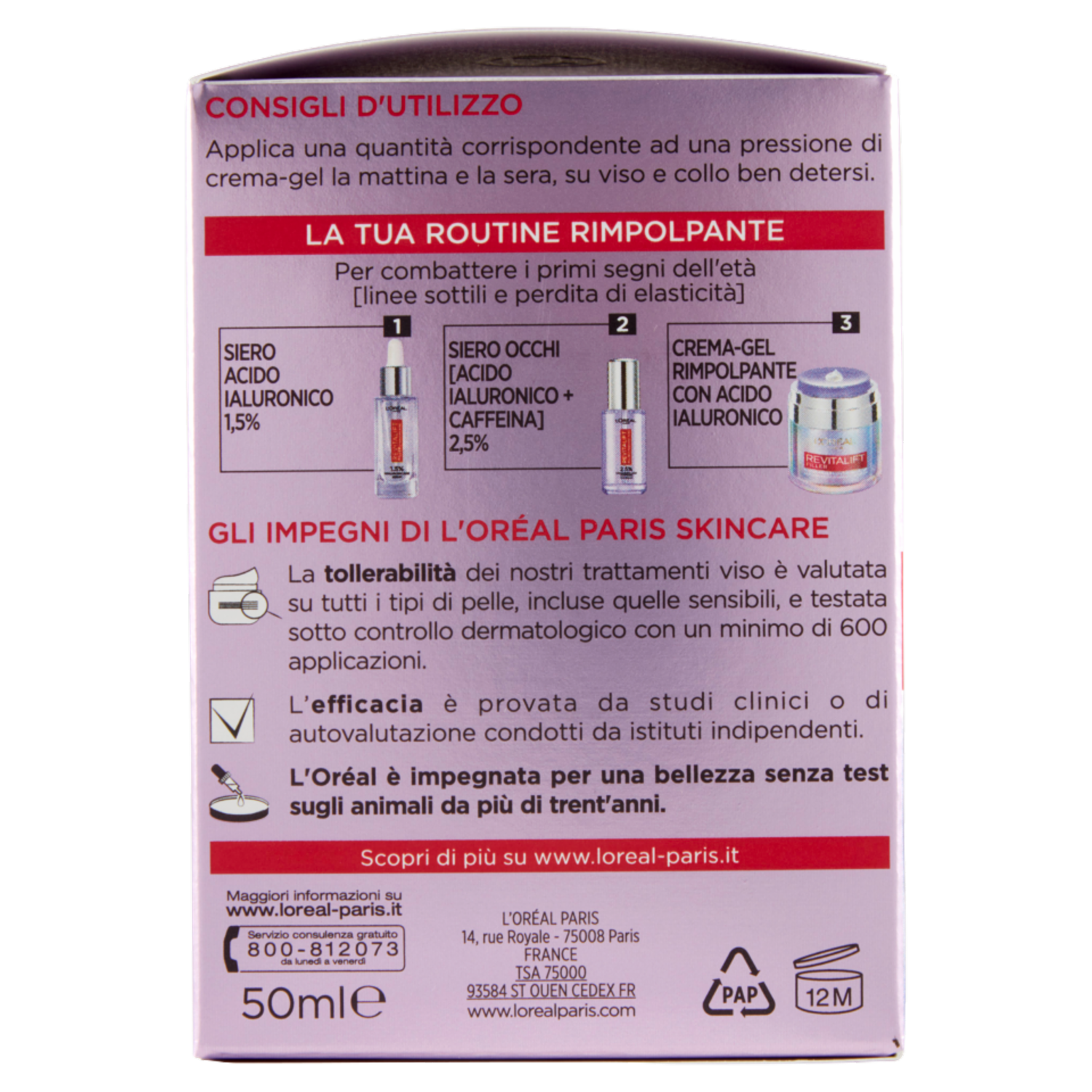 L'Oréal Paris Revitalift Filler Acido Ialuronico Micro-Epidermico Crema-Gel Rimpolpante, 50 ml