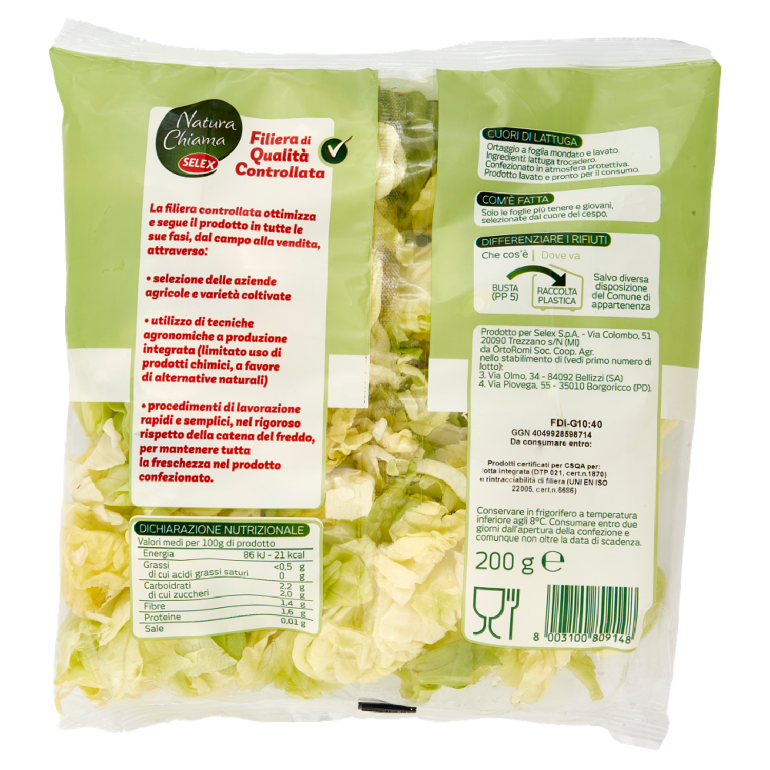 Selex Natura Chiama Cuori di Lattuga Lavati e Pronti per il Consumo 200 g