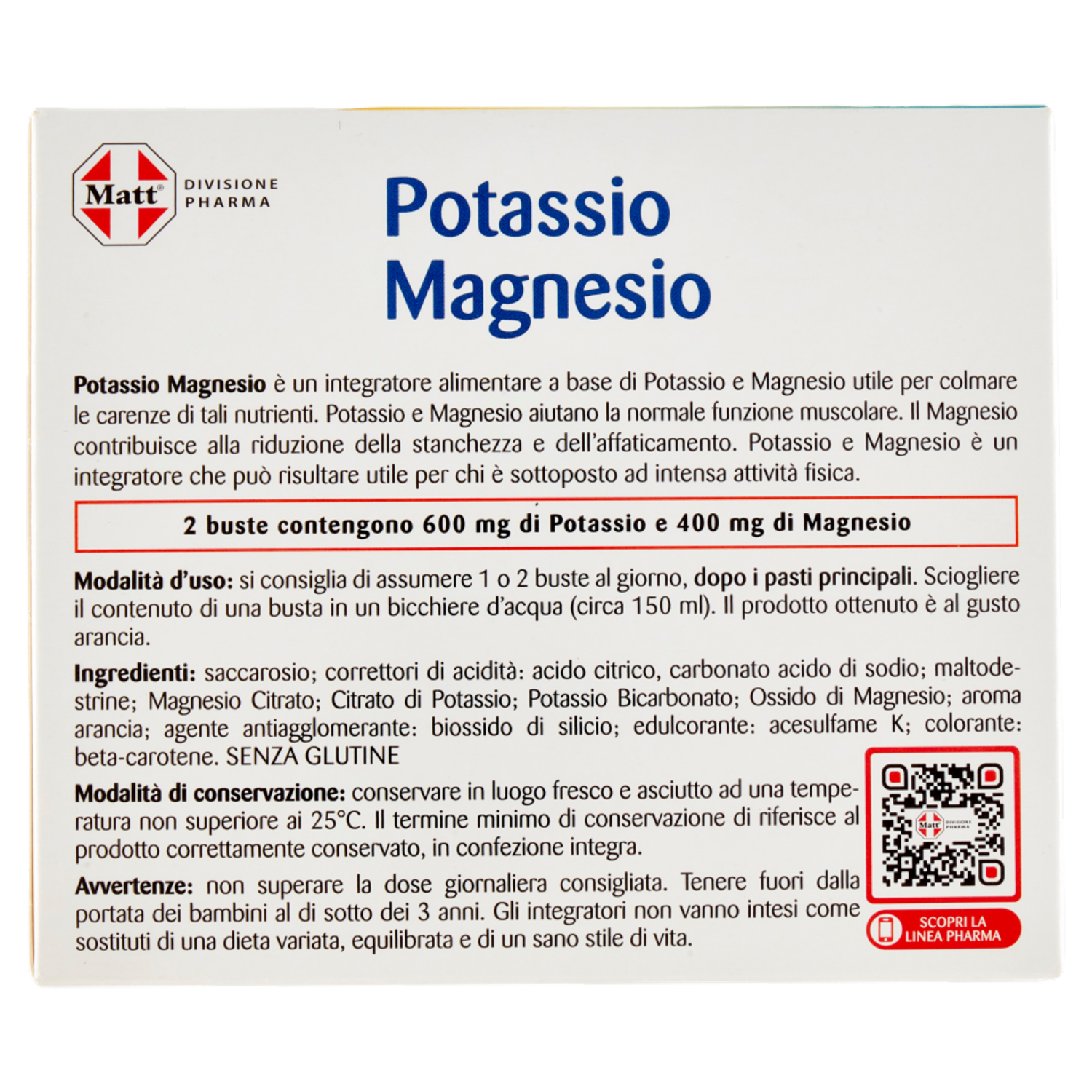 Matt Divisione Pharma Potassio Magnesio 20 buste di granulare effervescente 200 g