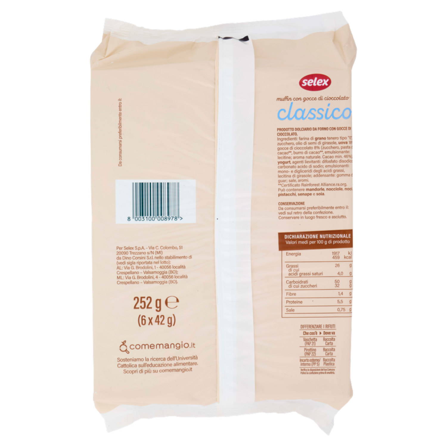 Selex Muffin con Gocce di Cioccolato 6x42 g