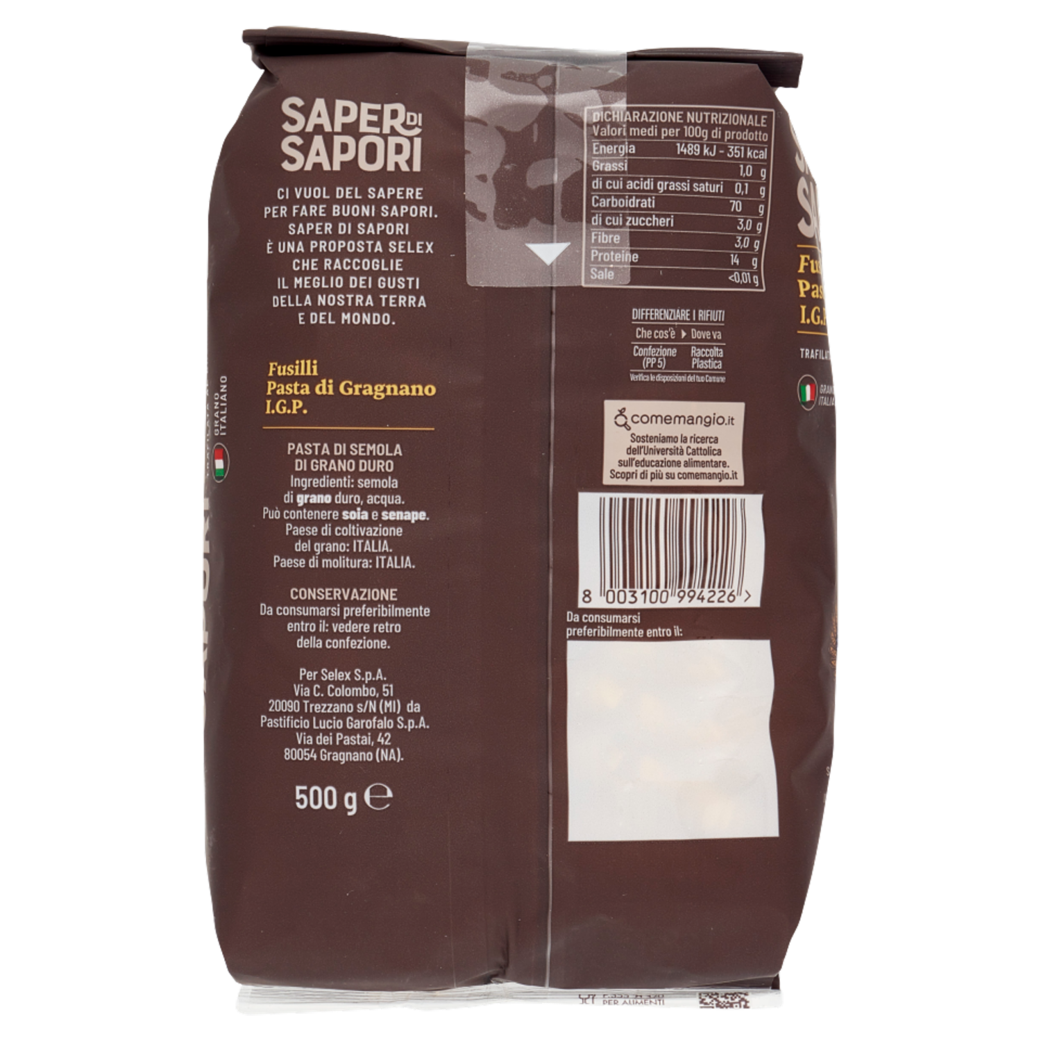 Selex Saper di Sapori Pasta di Semola di Gragnano I.G.P. Fusilli 500 g
