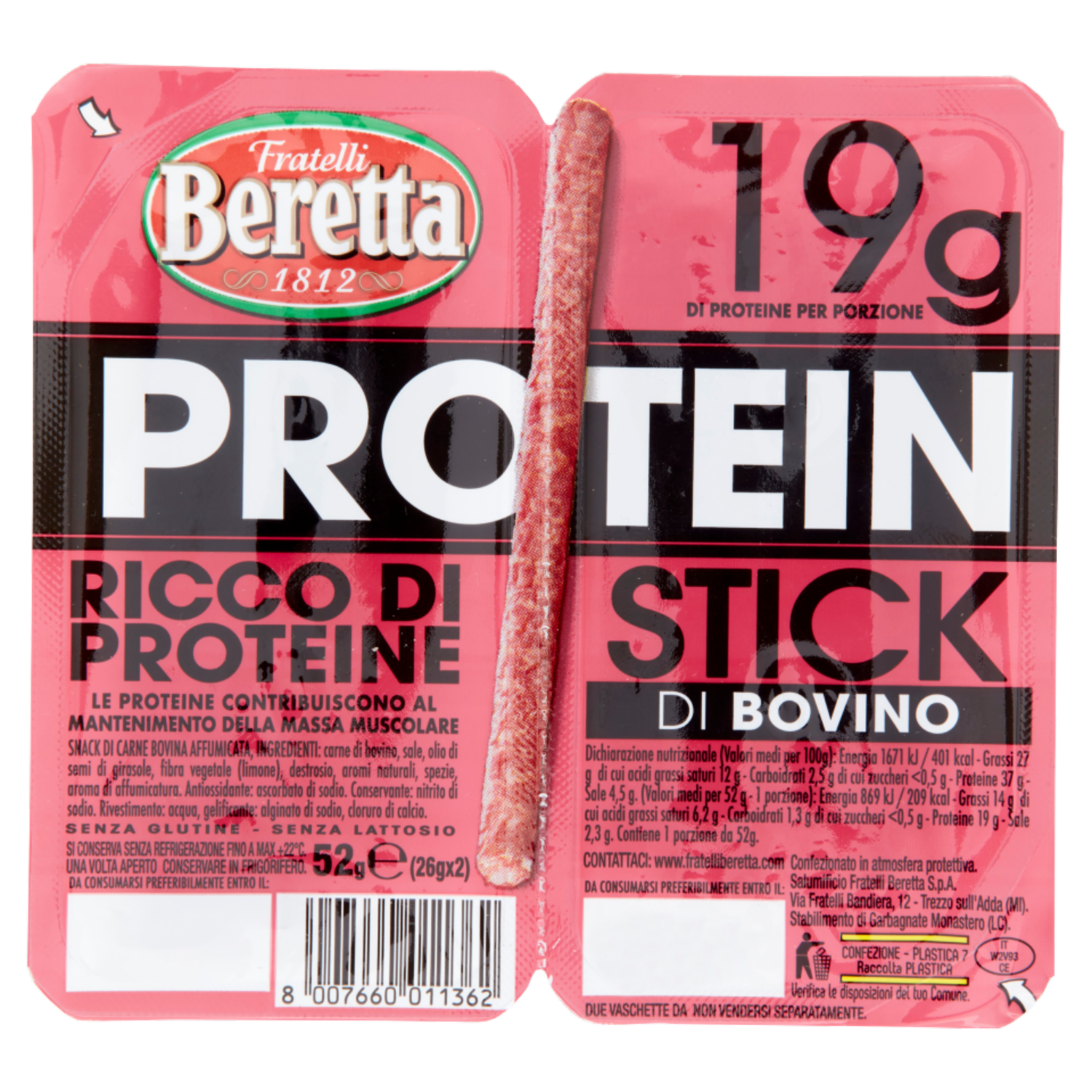 Fratelli Beretta Protein 19g Stick di Bovino 2 x 26 g