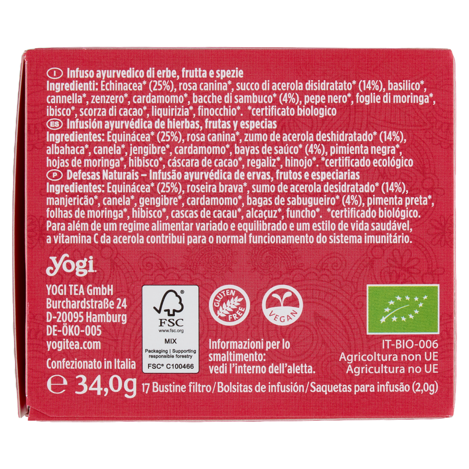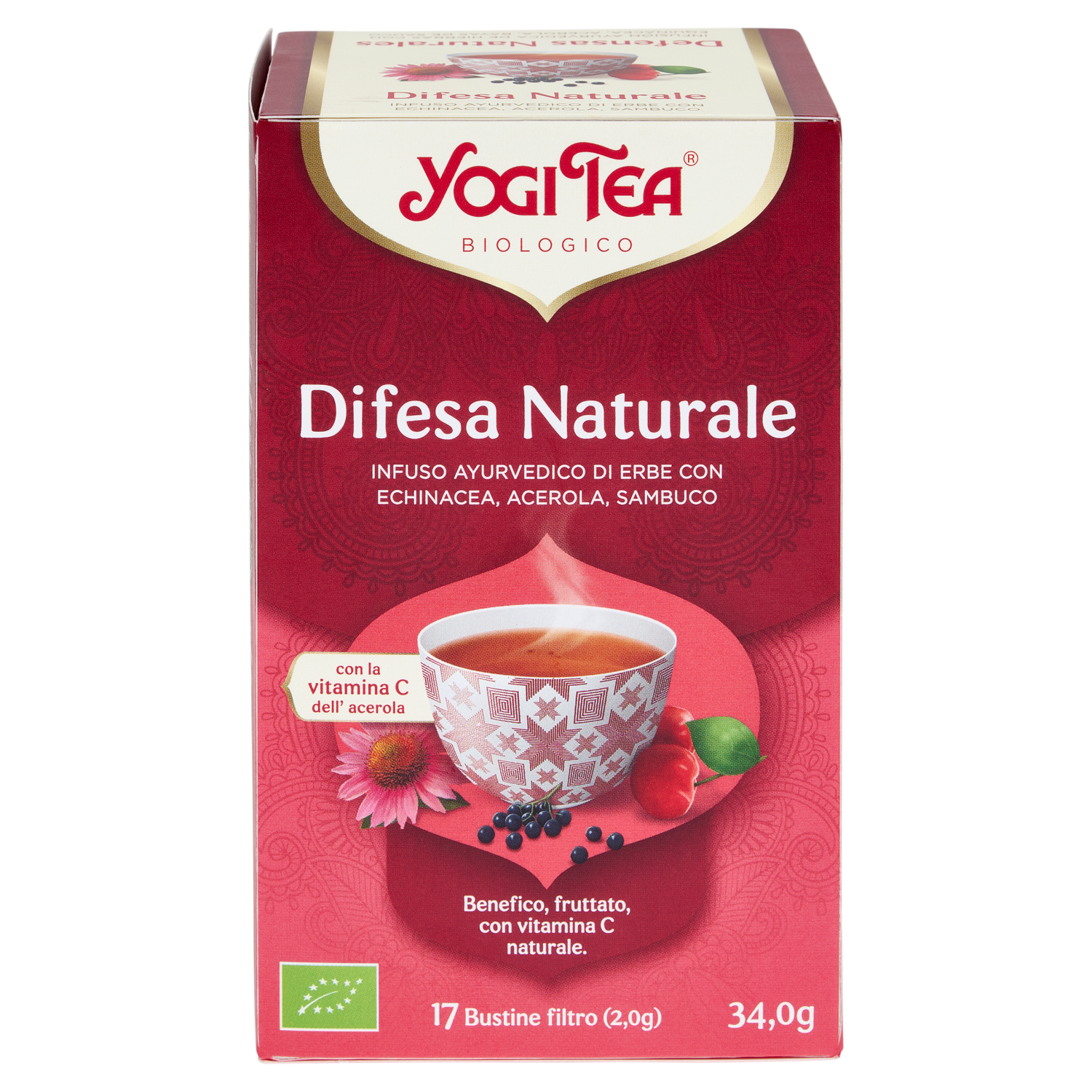 Yogi Tea Difesa Naturale Bio infuso ayurvedico di erbe con echinacea, acerola e sambuco - 34g
