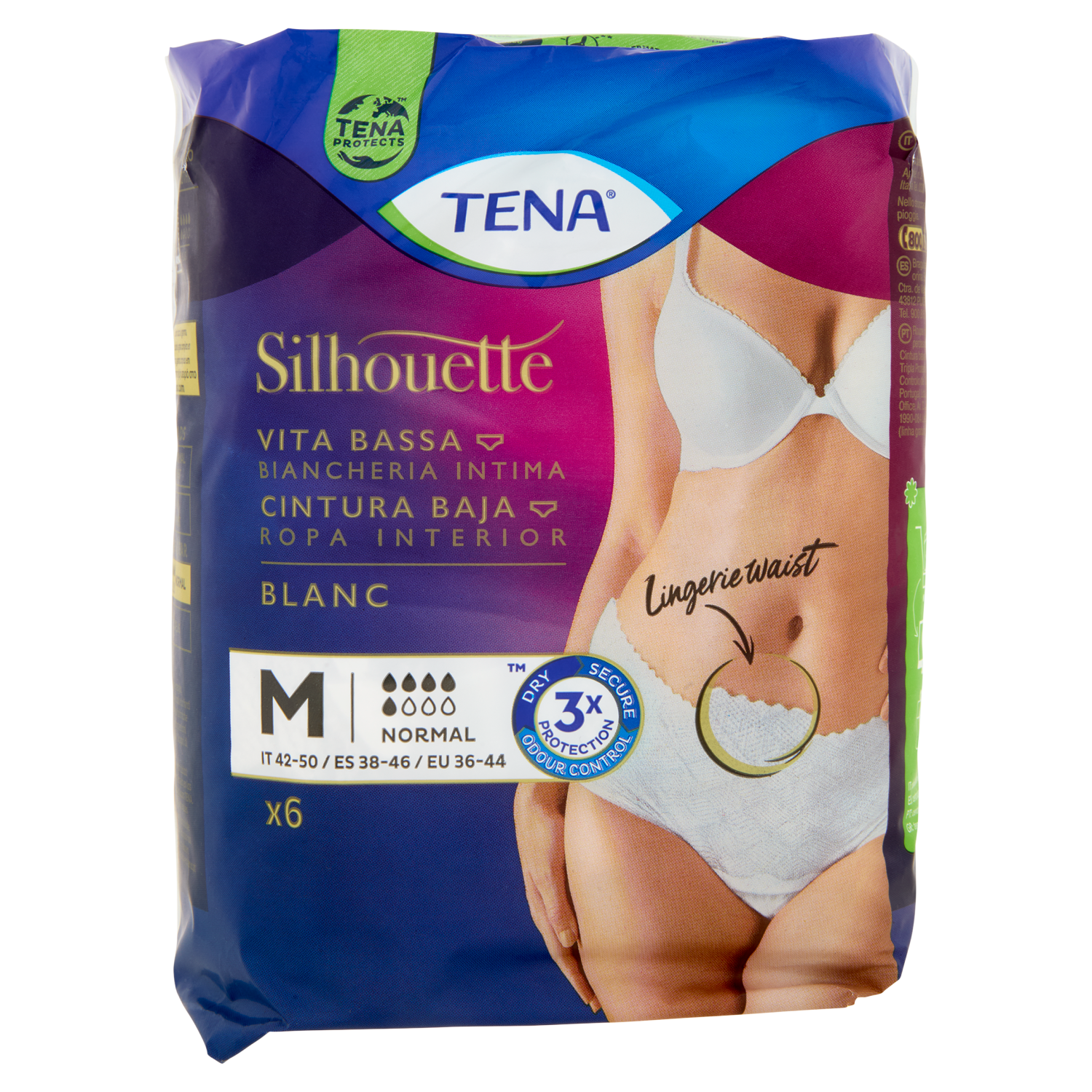 Tena Silhouette Vita Bassa Biancheria Intima Normal M Blanc 6 pz