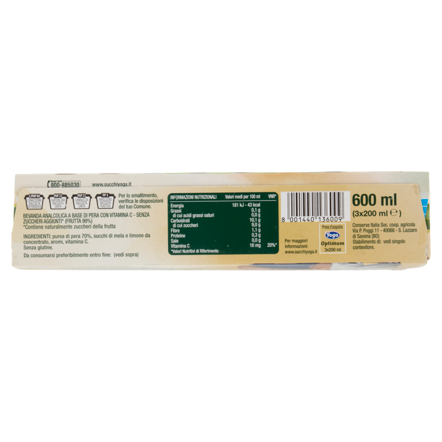 Yoga Optimum 70% Pera Italiana Senza Zuccheri Aggiunti* 3 x 200 ml