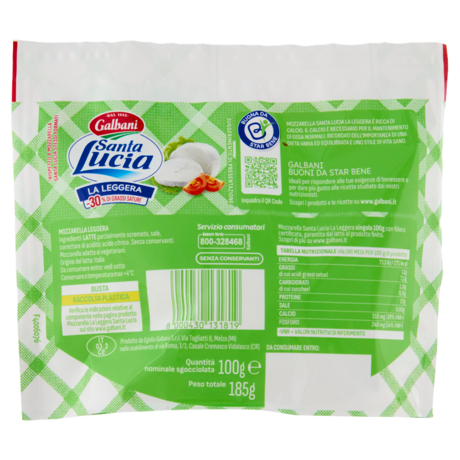 Galbani Santa Lucia la Leggera Mozzarella 100 g