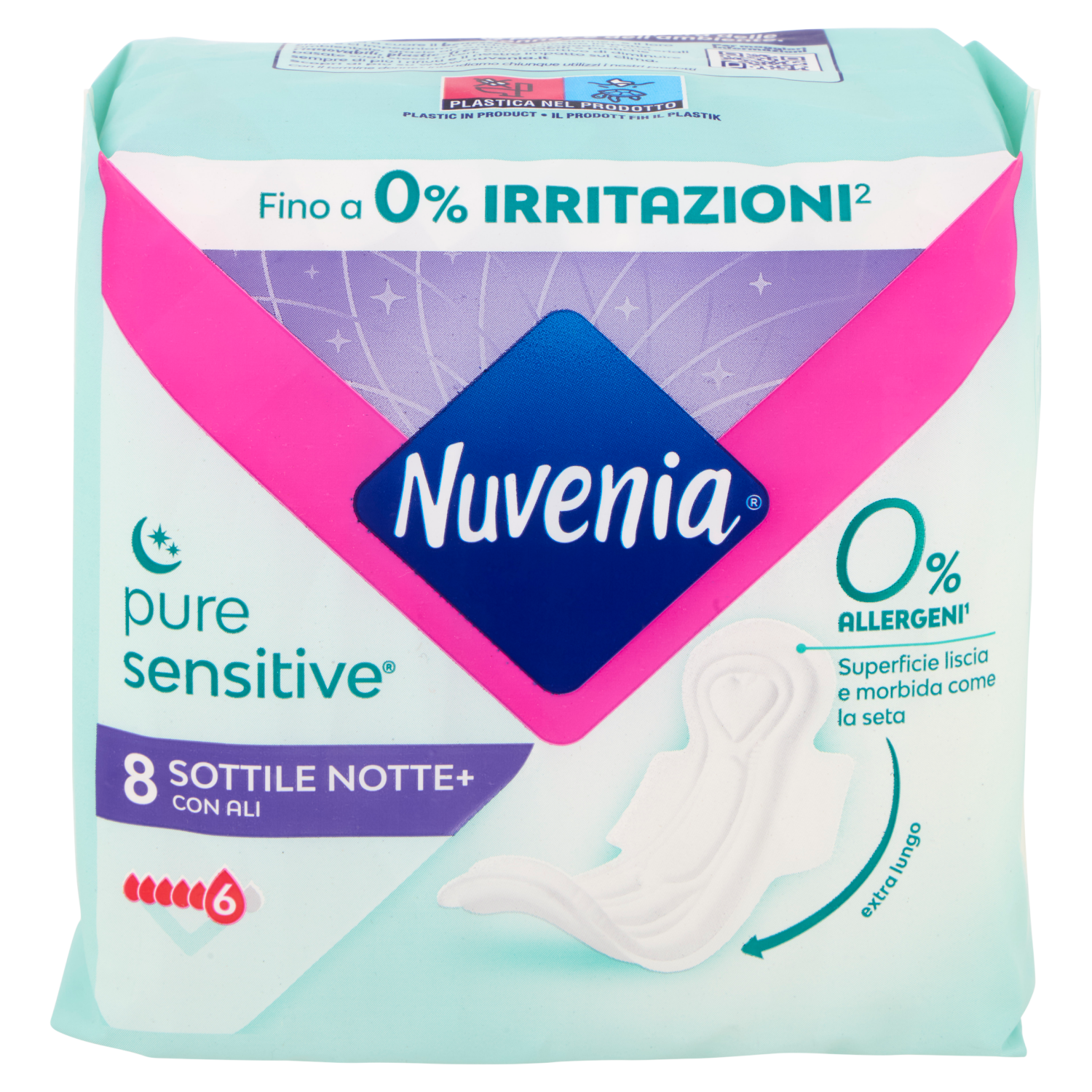 Nuvenia pure sensitive Sottile Notte+ con Ali 8 pz