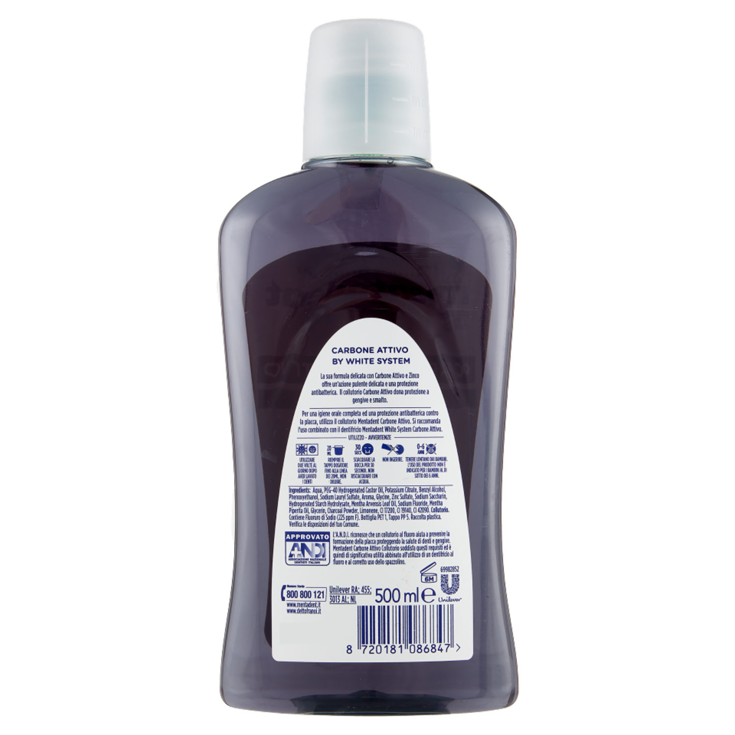 Mentadent Collutorio Menta Piperita Carbone Attivo White System 500 ml