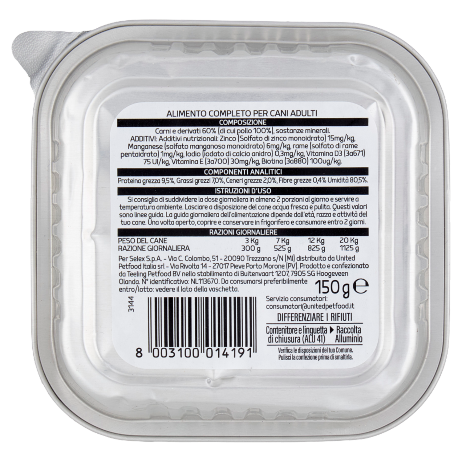 Selex Amico Mio Cane Paté con Pollo Mono Proteico 150 g