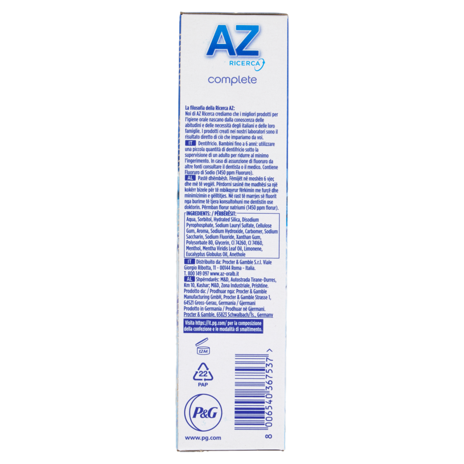 AZ Ricerca Dentifricio Complete Plus Freschezza Intensa Menta Fresca 65 ml