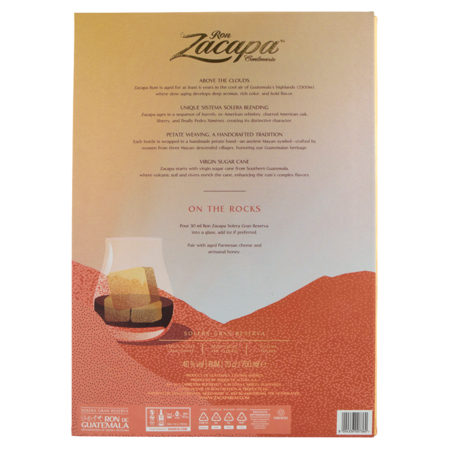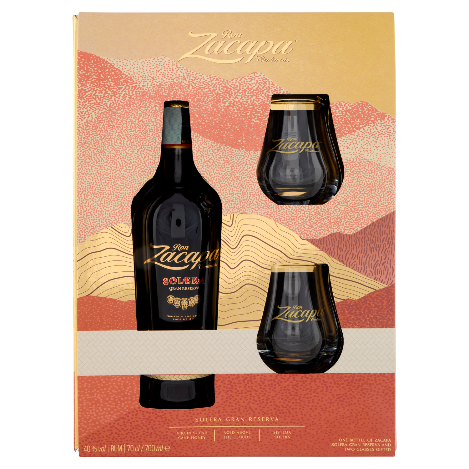Ron Zacapa Centenario Solera Gran Reserva 70 cl + Glasses Gifted 2 pz