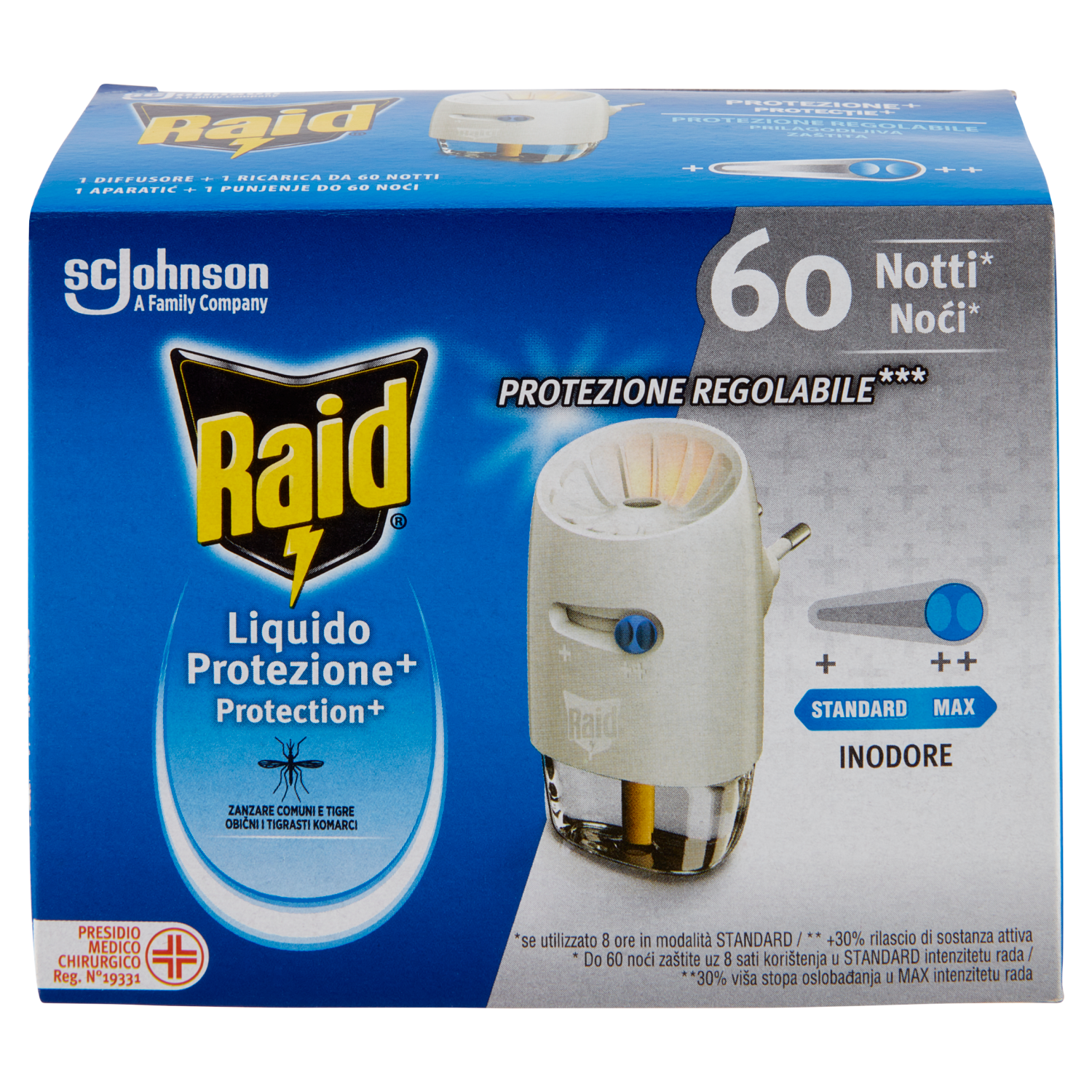 Raid Liquido Elettrico Protezione +, Confezione da 1 Base e 1 Ricarica 60 Notti, 36 ml