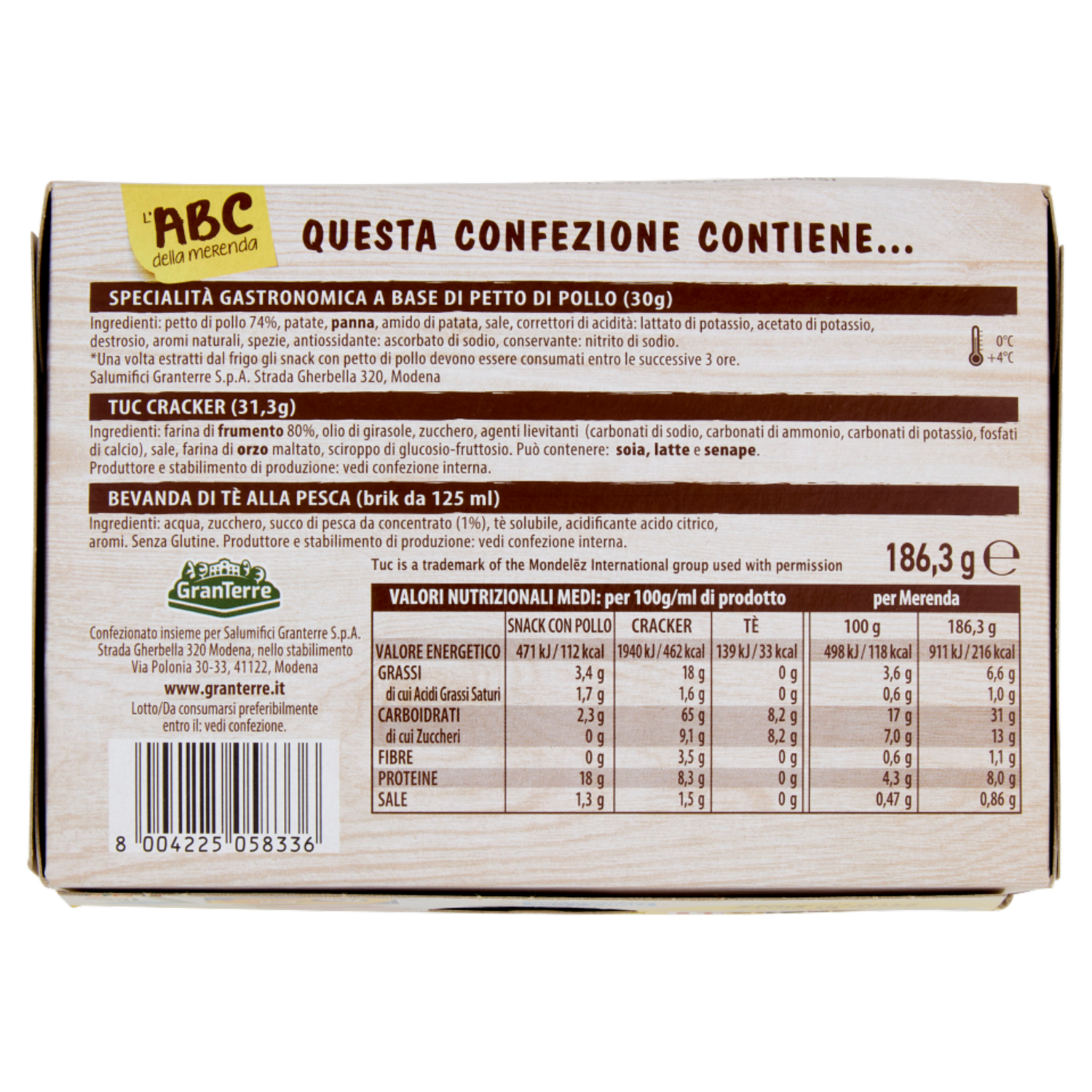 Teneroni l'ABC della merenda Snack con Petto di Pollo e Tuc Cracker 186,3 g
