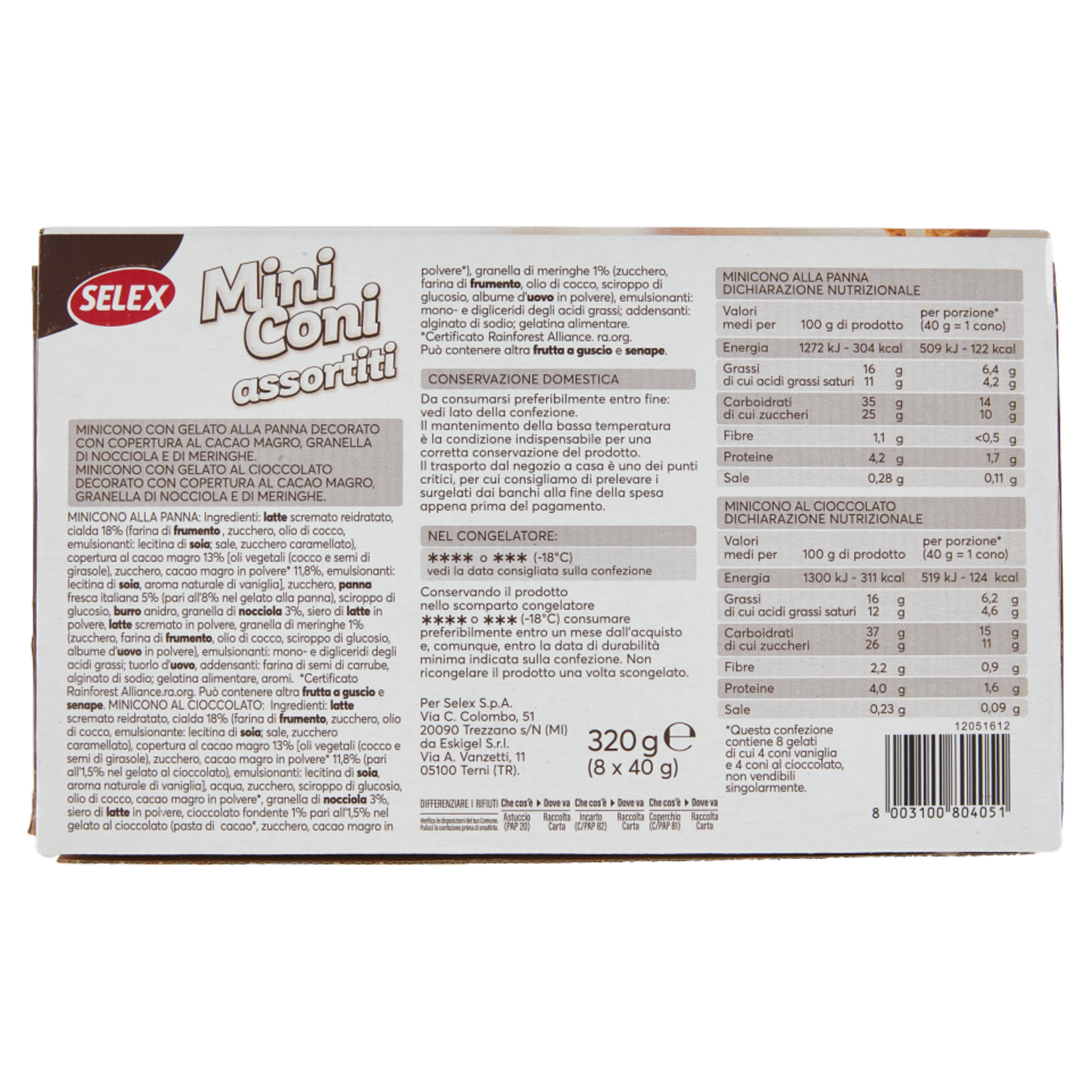 Selex 8 Miniconi di Gelato Assortiti 320 g