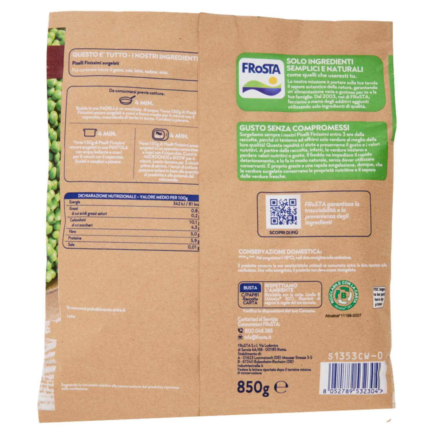 FRoSTA i Finissimi Piselli Piccoli e Teneri Surgelati 850 g
