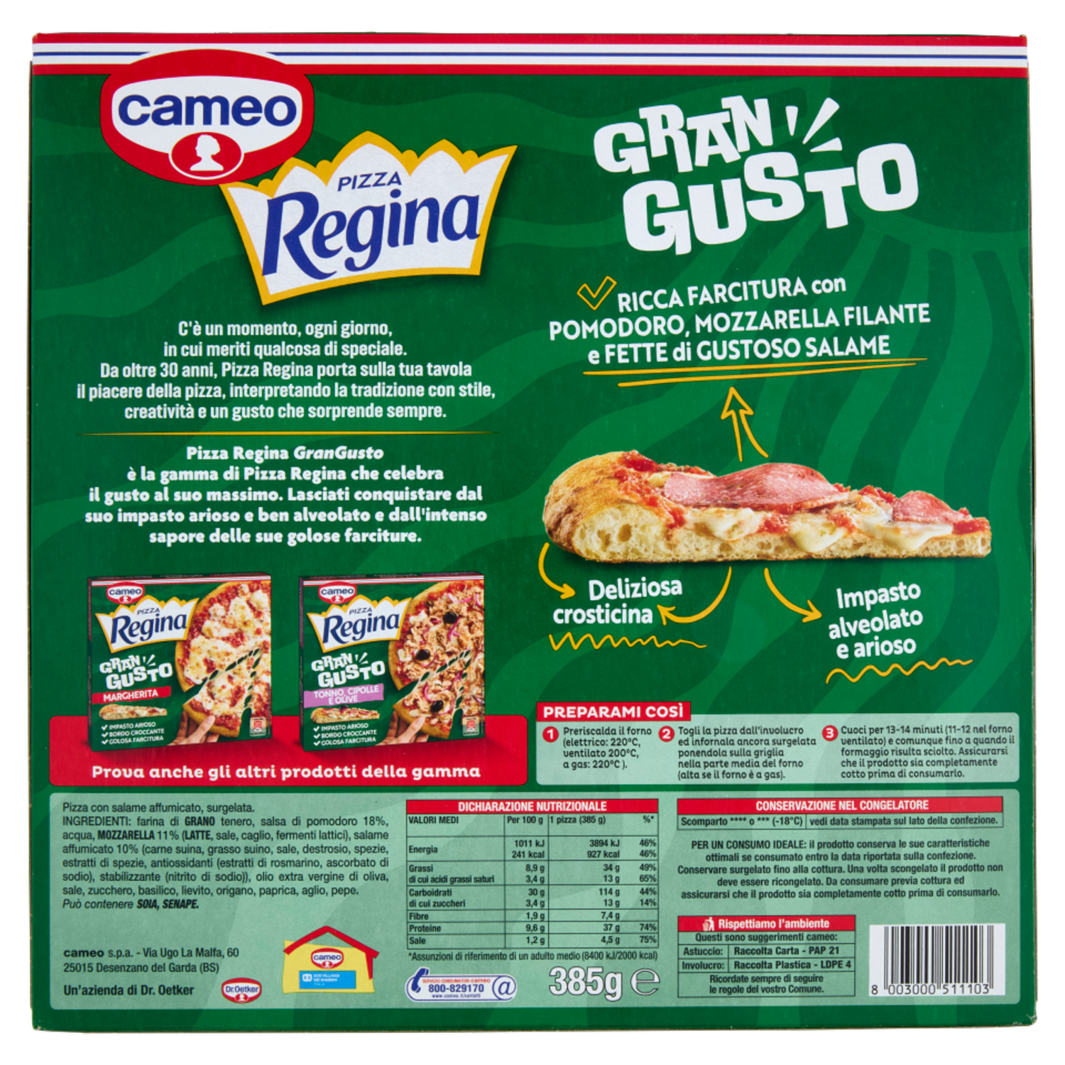 cameo Pizza Regina Gran Gusto Salame 385 g