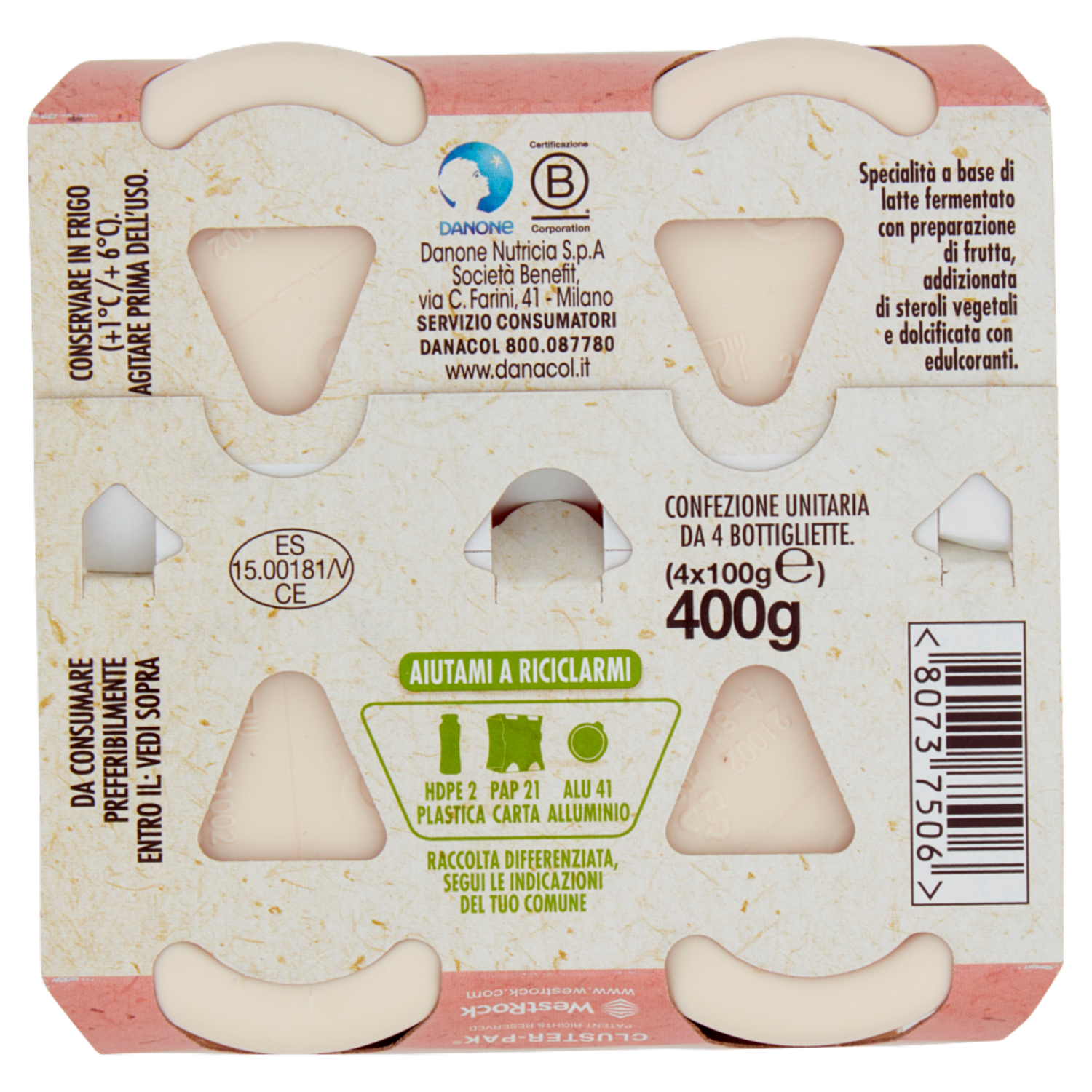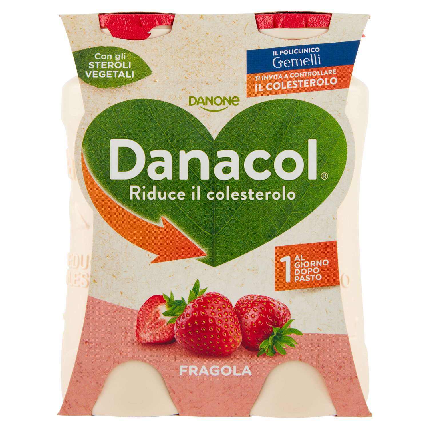DANACOL Yogurt da bere, Riduce il Colesterolo grazie agli Steroli Vegetali, gusto Fragola, 4x100g