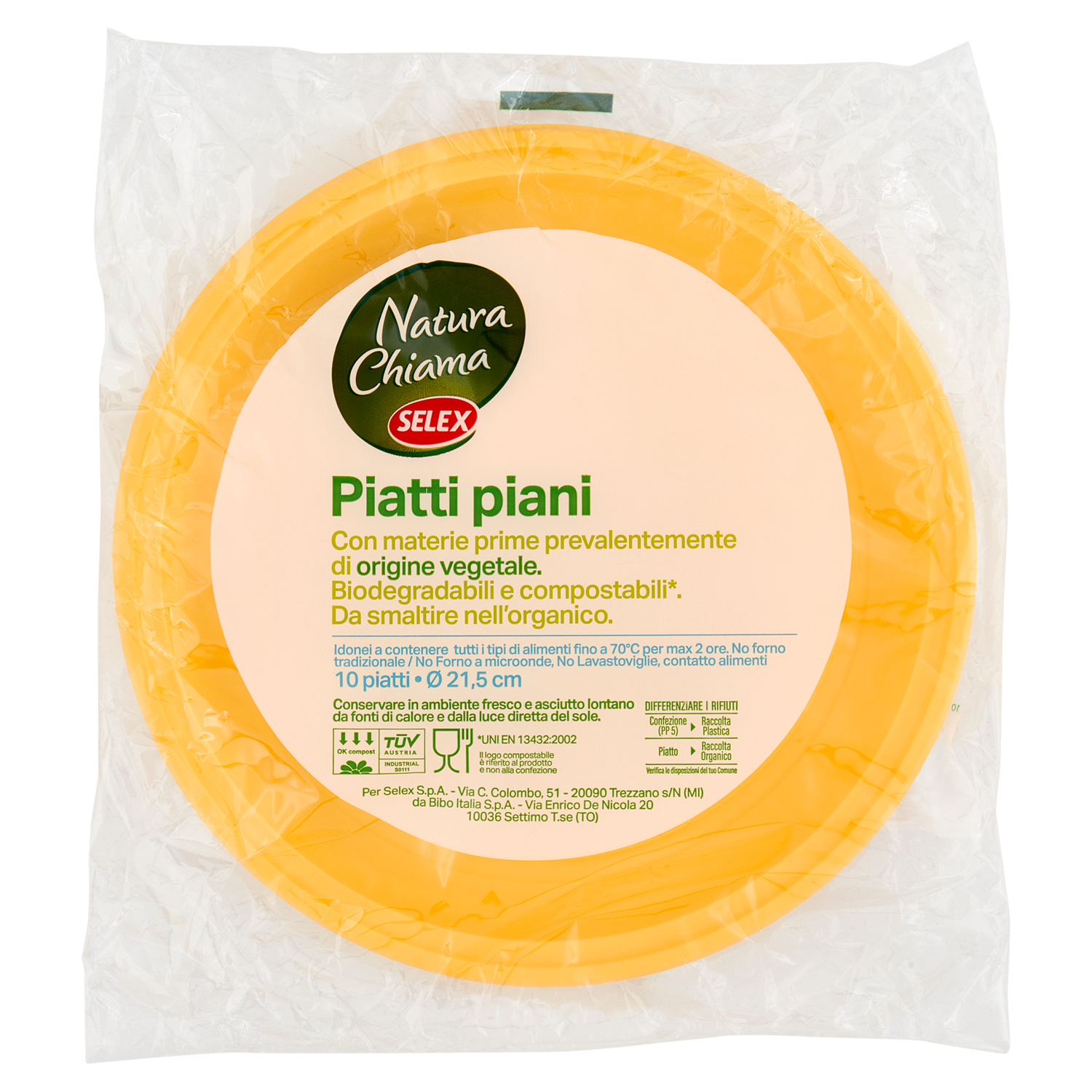 Selex Natura Chiama Piatti Piani Biodegradabili e Compostabili Ecologici Gialli 10 pezzi
