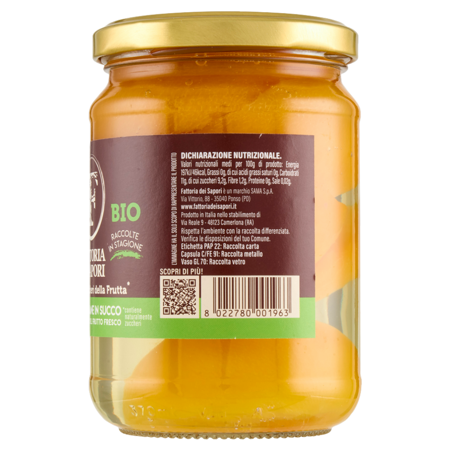 Fattoria dei Sapori Bio Pesche Italiane in Succo 350 g