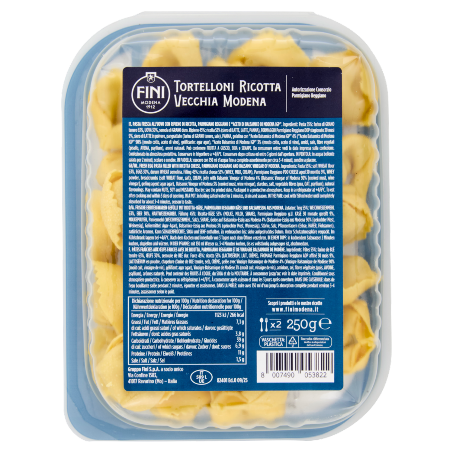 Fini Le Ricette della Tradizione Tortelloni Ricotta Vecchia Modena 250 g