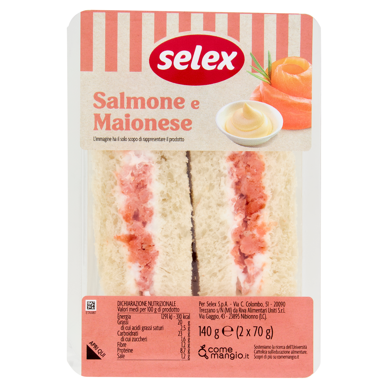 Selex Tramezzini Farciti Salmone Affumicato e Maionese 2x70 g