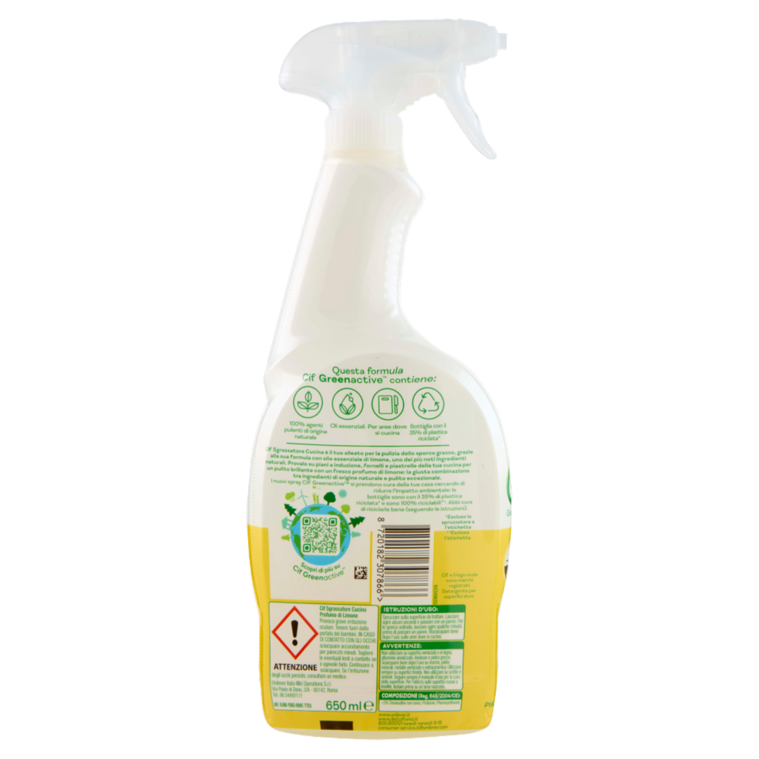 Cif Greenactive Sgrassatore Cucina Profumo di Limone 650 ml