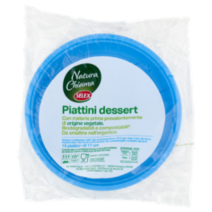 Selex Natura Chiama Piattini Biodegradabili e Compostabili Ecologici Azzurri 15 pezzi