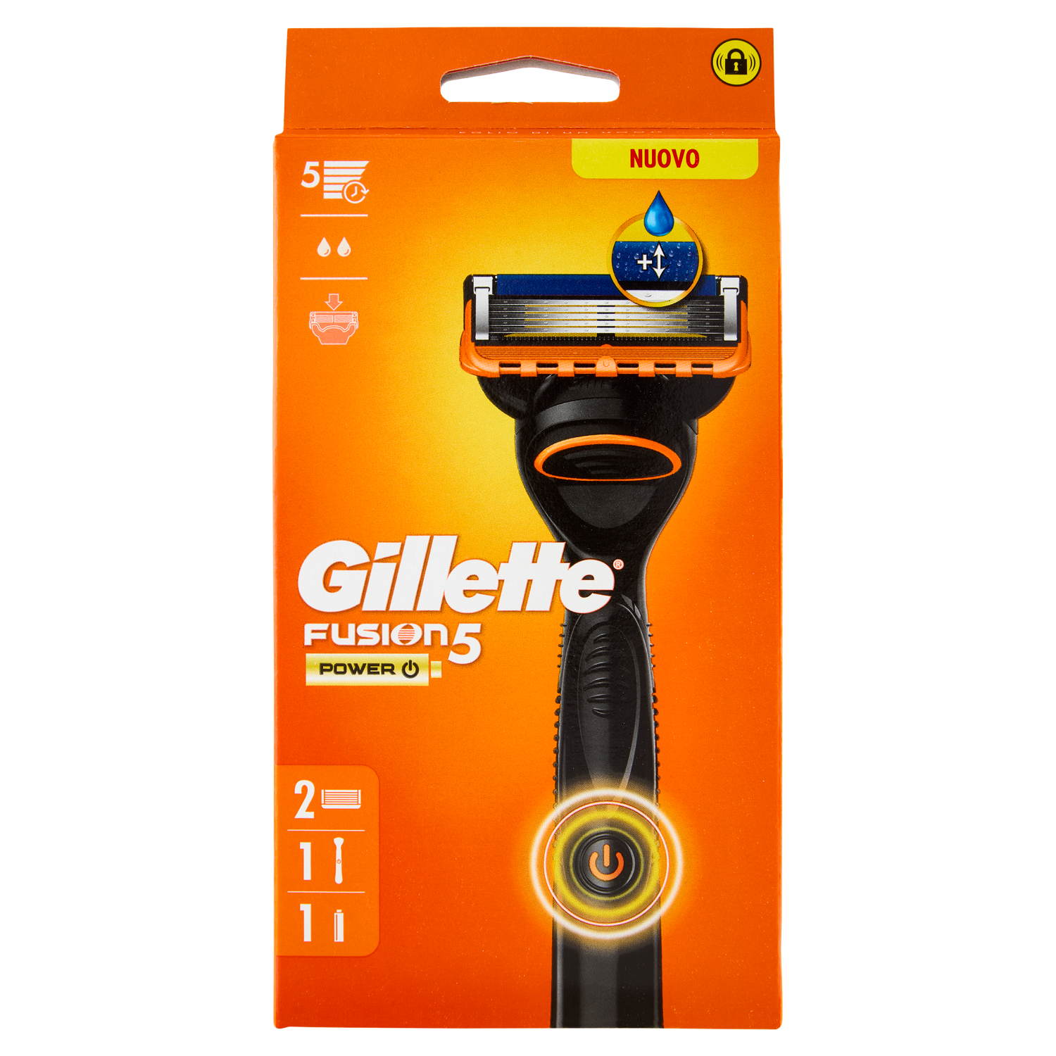 Gillette Fusion5 Power Rasoio da Uomo a 5 Lame, 1 Manico + 2 Lamette + 1 Batteria
