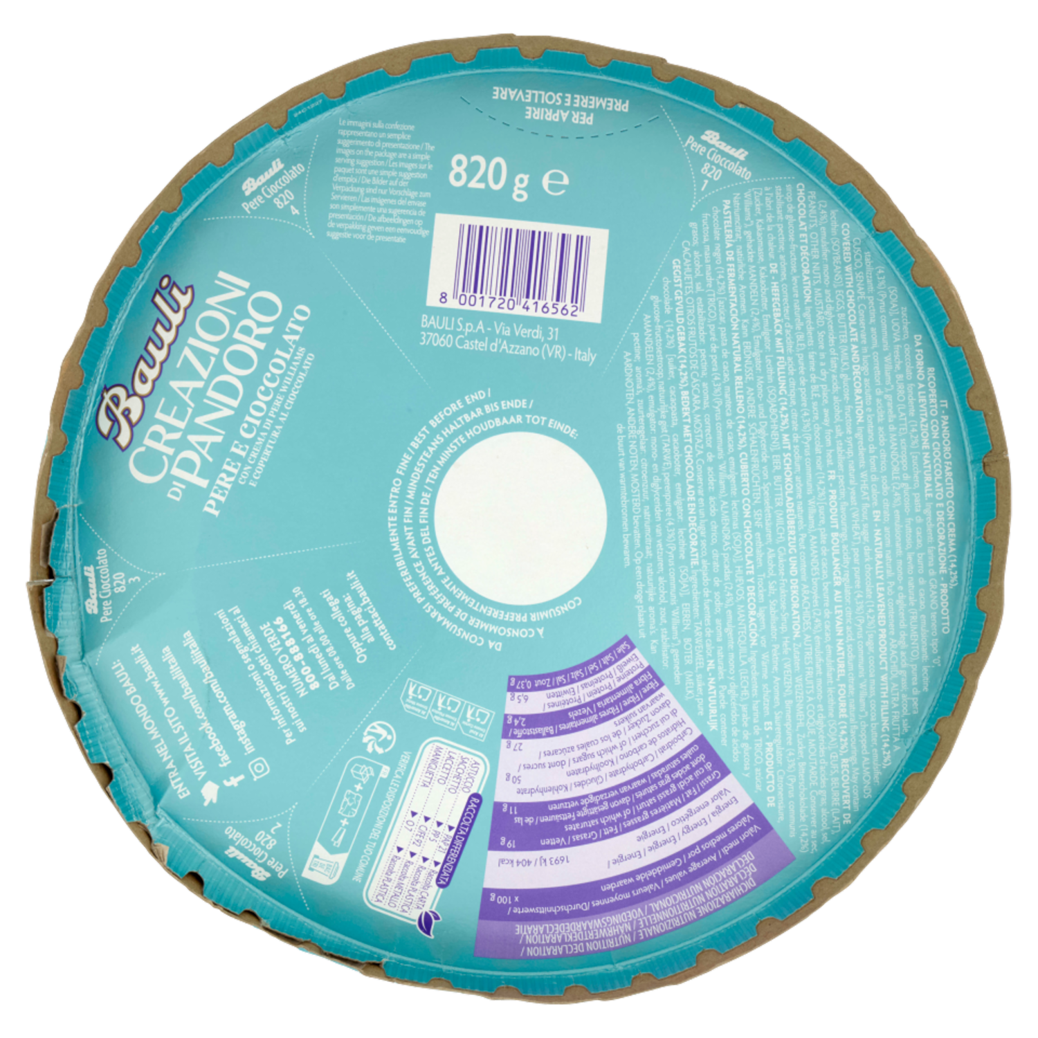 Bauli Creazioni di Pandoro Pere e Cioccolato 820 g