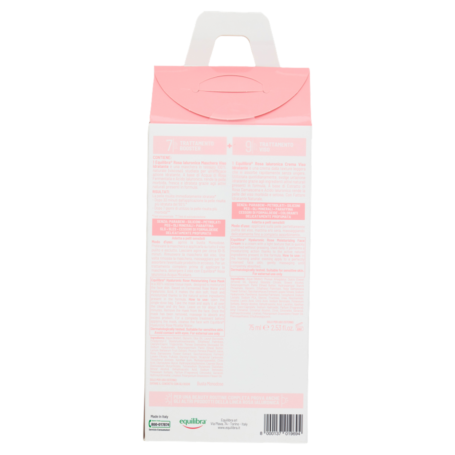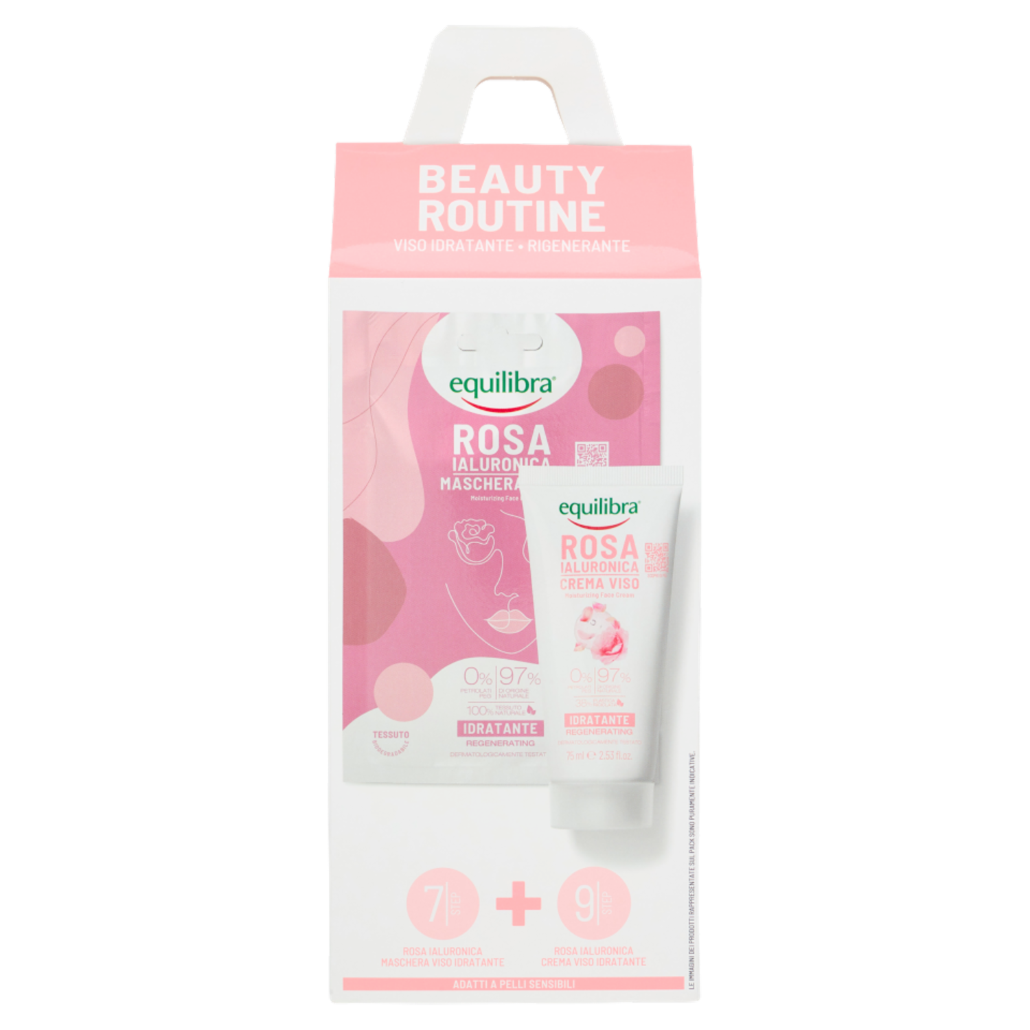 equilibra Rosa Ialuronica Beauty Routine Viso Idratante - Rigenerante Maschera + Crema 75 ml