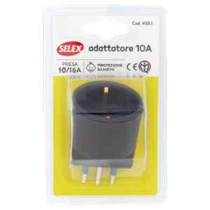 Selex Adattatore Semplice Spina 10A + 1 Presa 10-16A(Ted) Nero