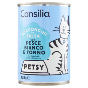 Consilia Petsy Gatto Bocconcini con Pesce Bianco e Tonno 405 g