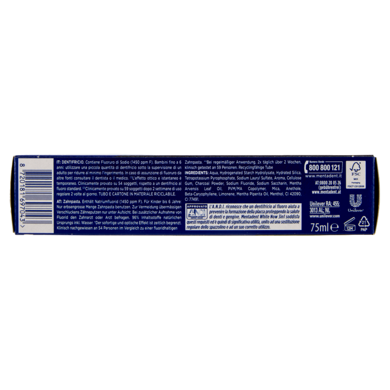 Mentadent White Now 3 in1 White Boost con Carbone Attivo 75 ml