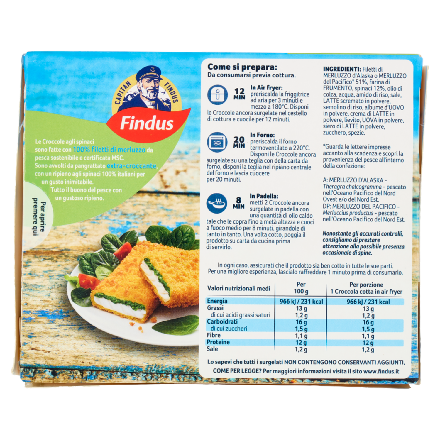 Capitan Findus 2 Croccole agli Spinaci con 100% Filetti di Merluzzo 200 g