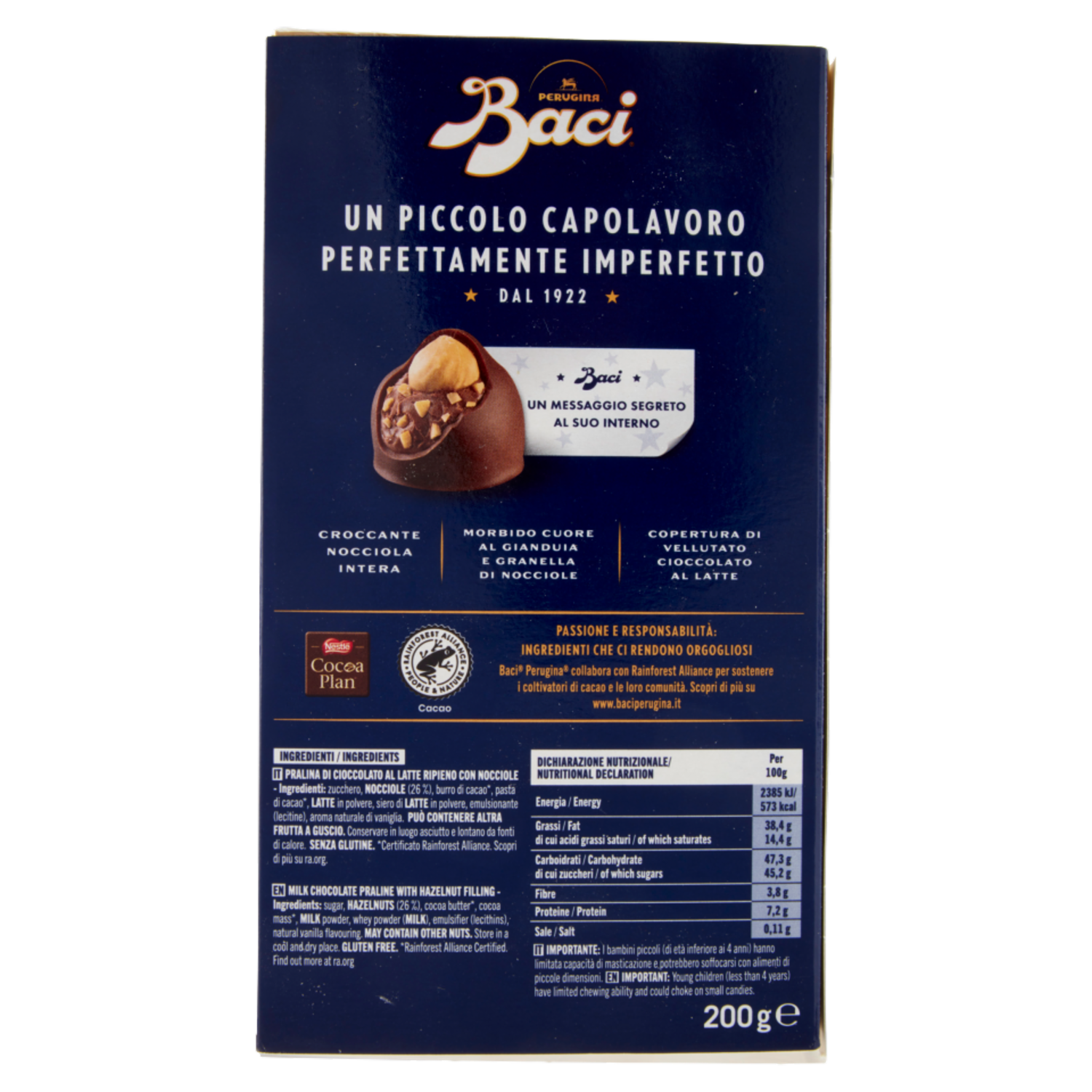 BACI PERUGINA Latte Cioccolatini ripieni al Gianduia e Nocciole Scatola 200g
