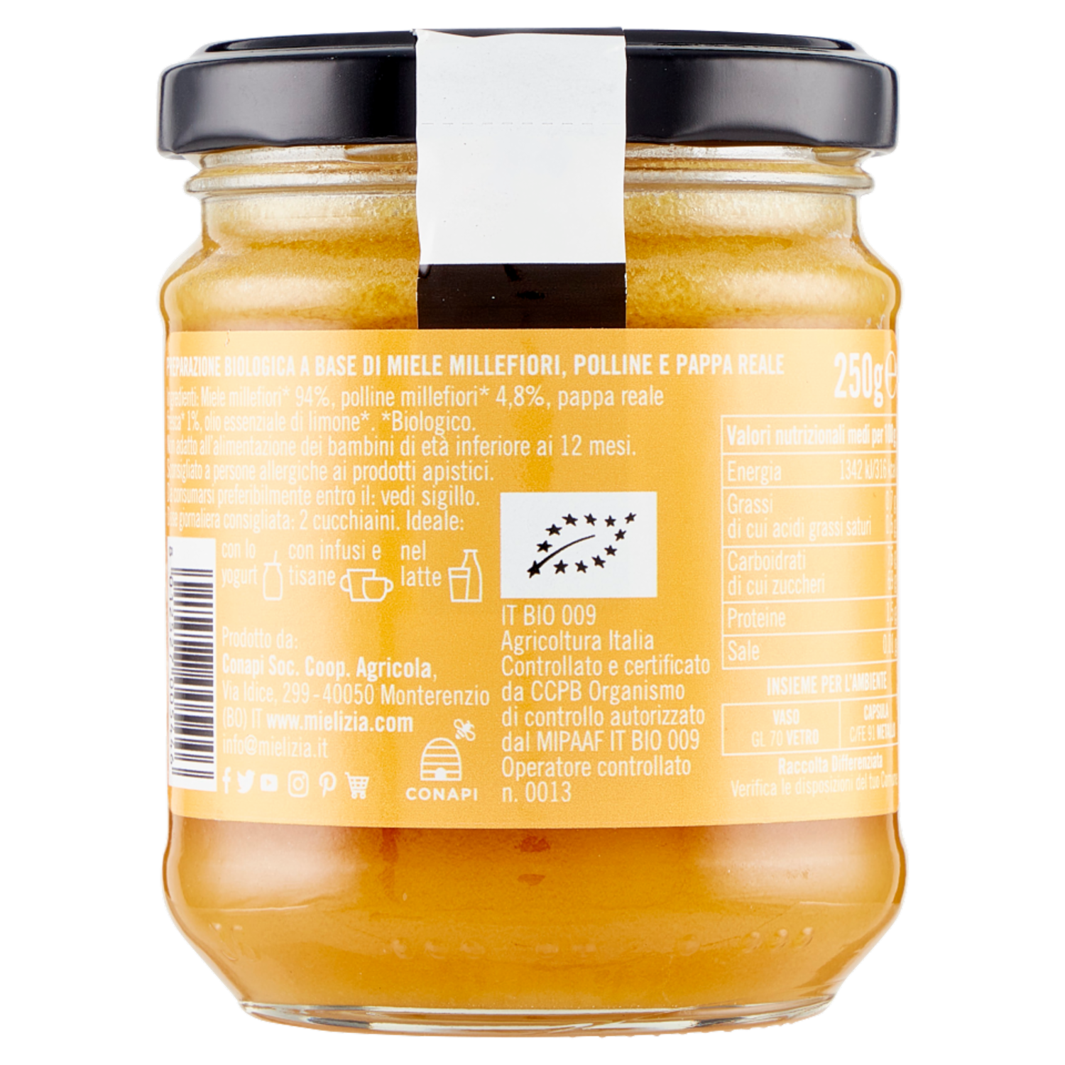 Mielizia Bio Miele+ Miele, Polline e Pappa Reale 250 g