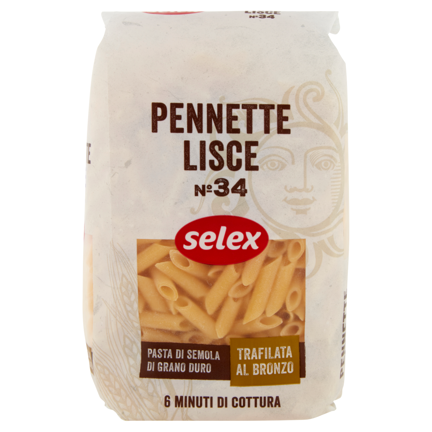 Selex Pasta di Semola Trafilata al Bronzo Pennette Lisce 500 g
