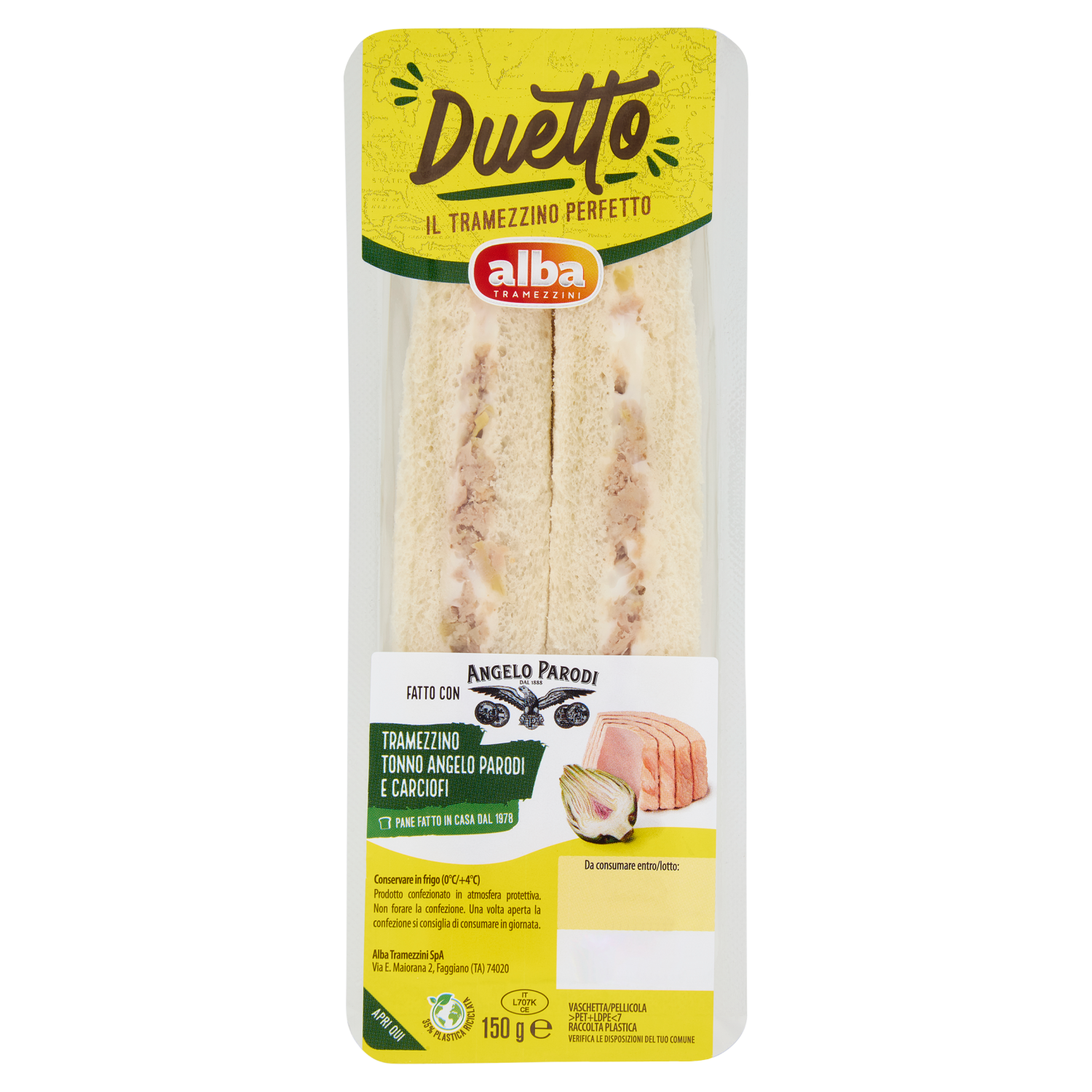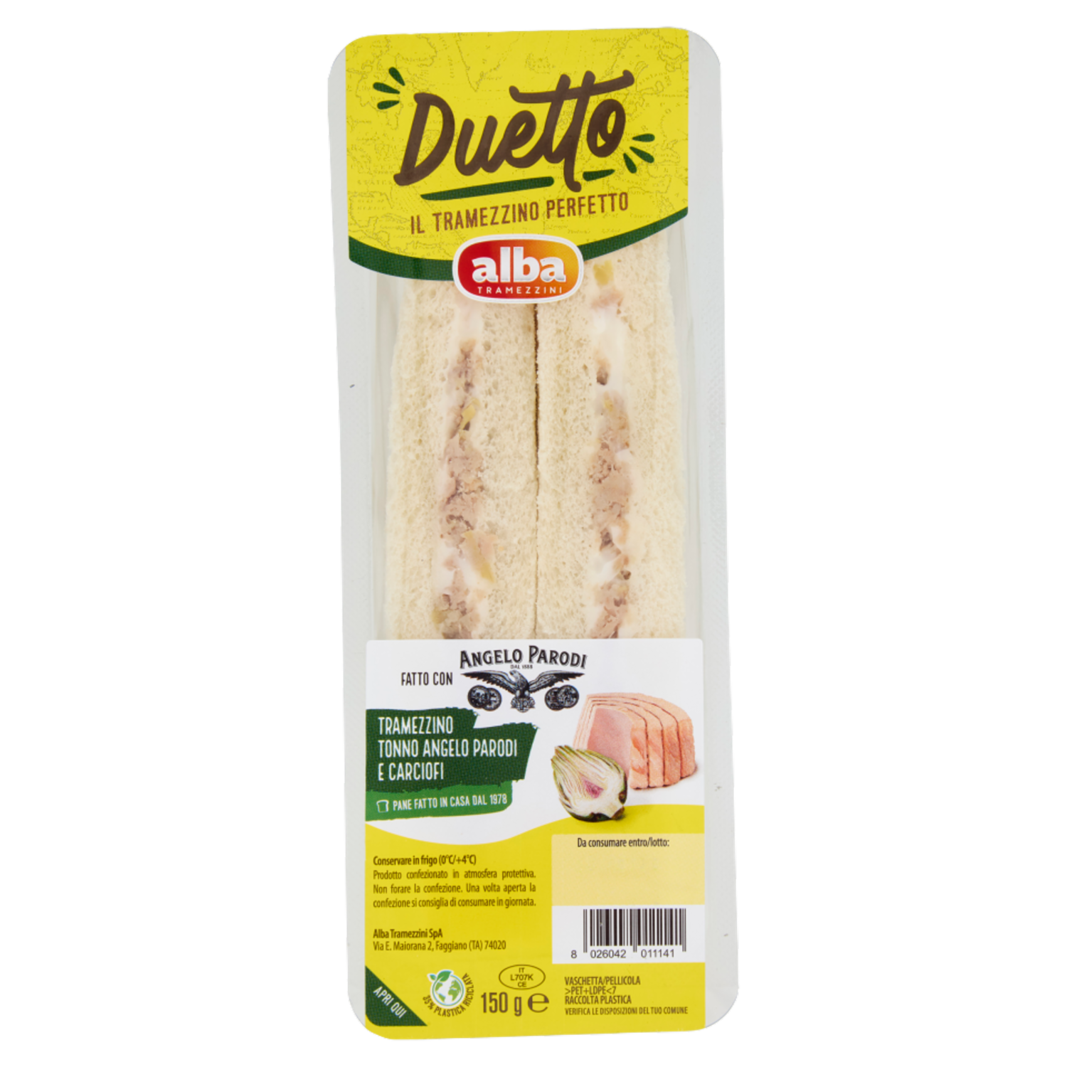 alba Tramezzini Duetto Tramezzino Tonno Angelo Parodi e Carciofi 150 g