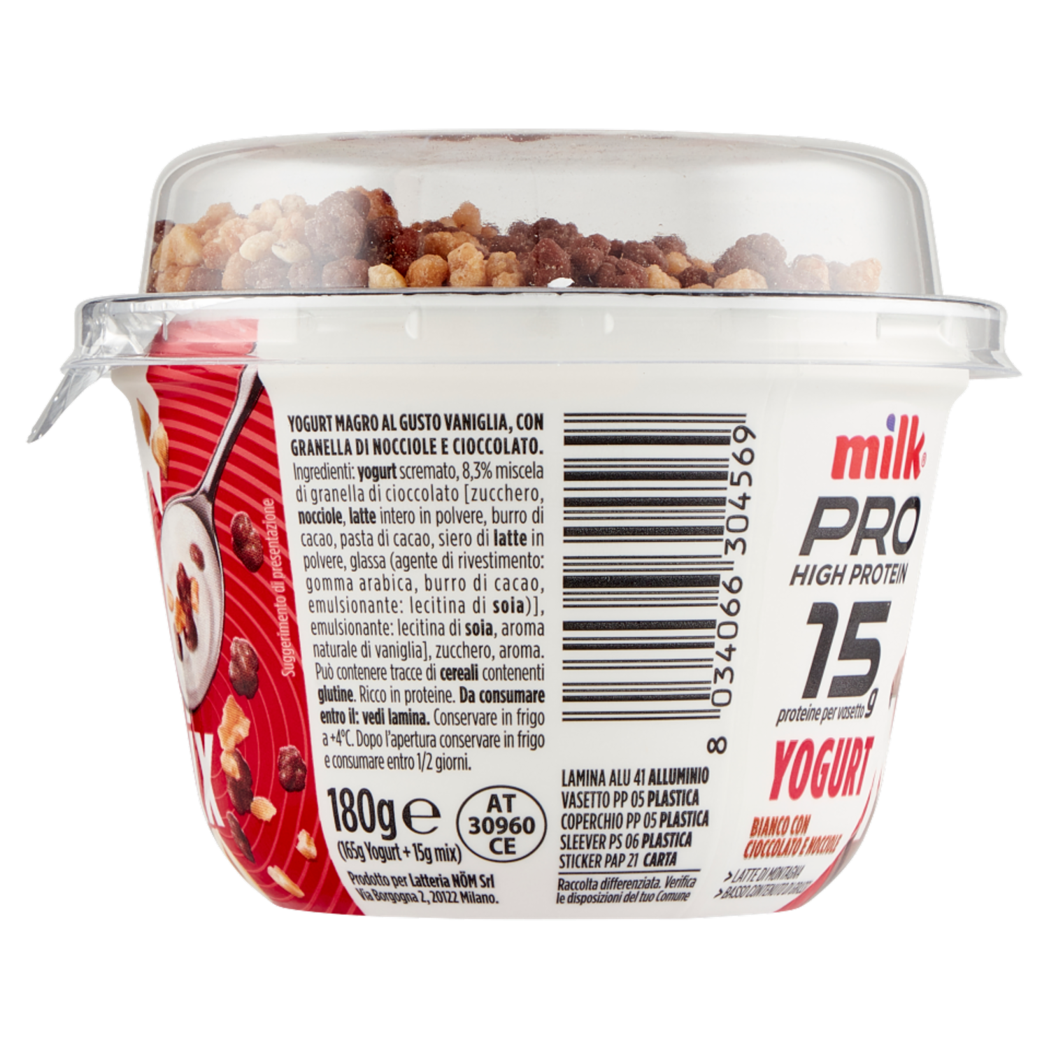 Milk Pro High Protein 15g Yogurt Bianco con Cioccolato e Nocciole 180 g