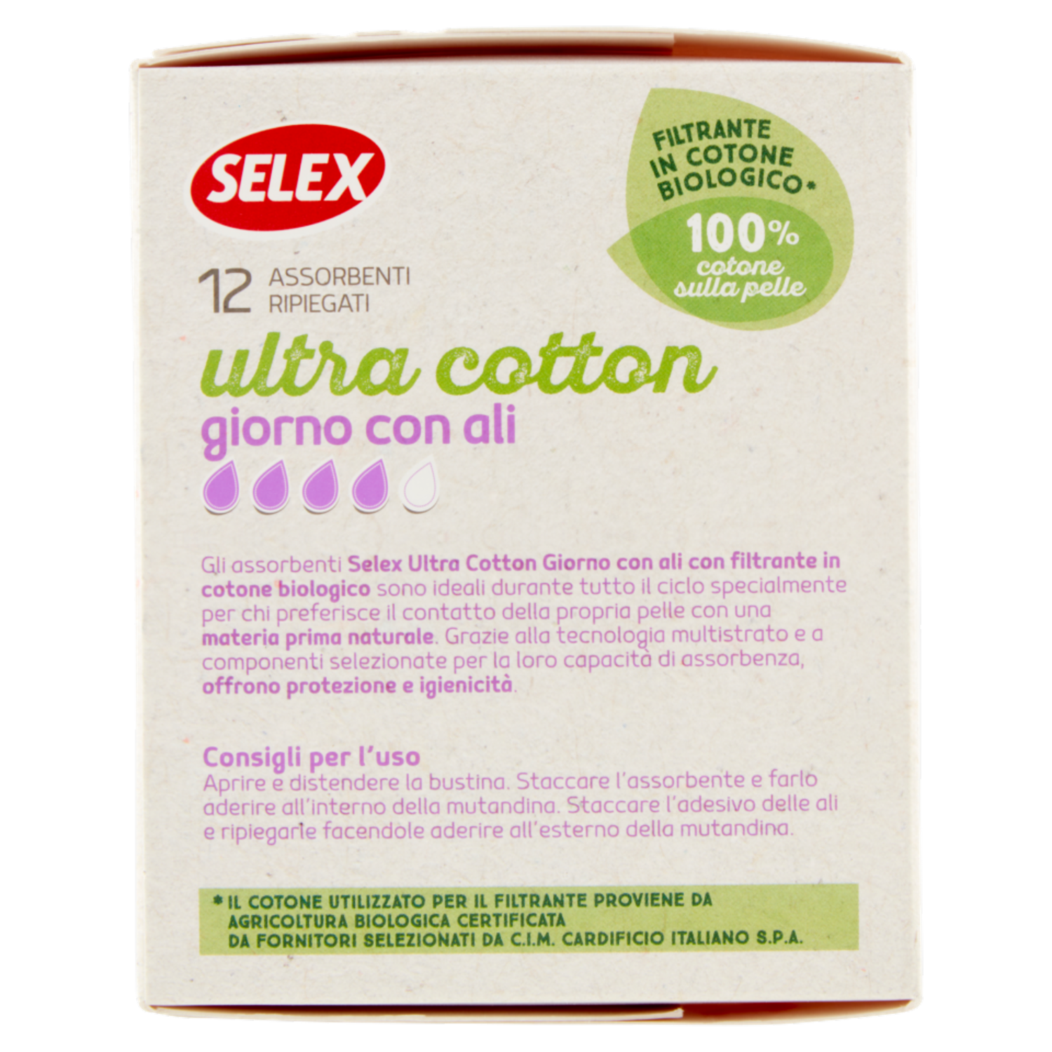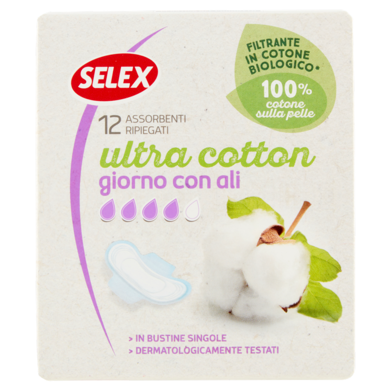 Selex Assorbenti Giorno con Ali in Cotone Biologico in Bustine Singole 12 pezzi