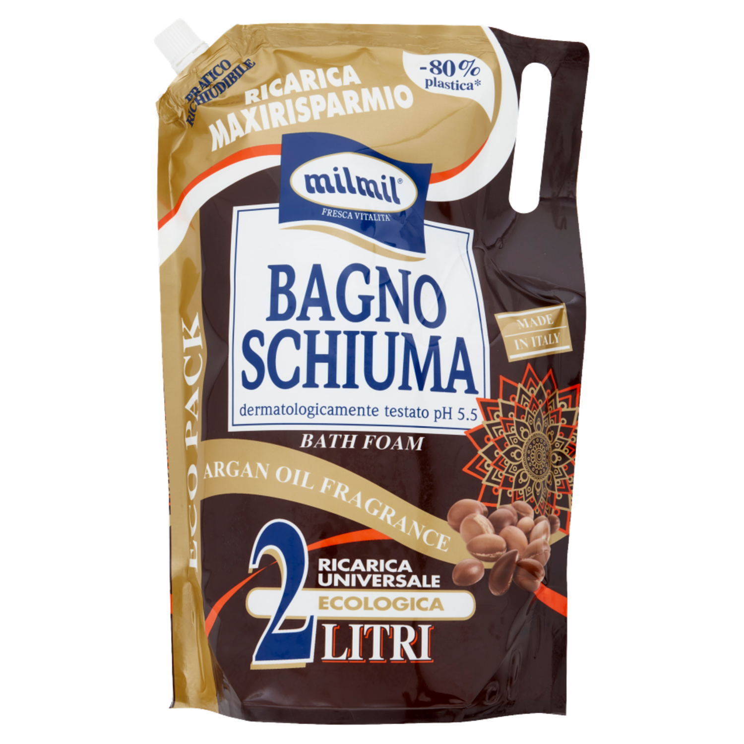 milmil Bagno Schiuma Argan Oil Fragrance Ricarica Universale Ecologica 2 Litri