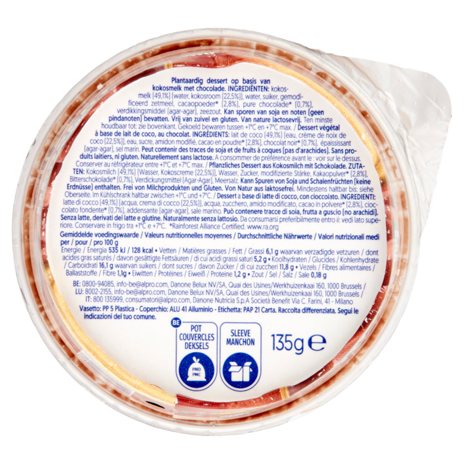 ALPRO Dessert Fresco 100% Vegetale, Gusto Cocco Cioccolato, Senza Lattosio, Senza Conservanti, 135g