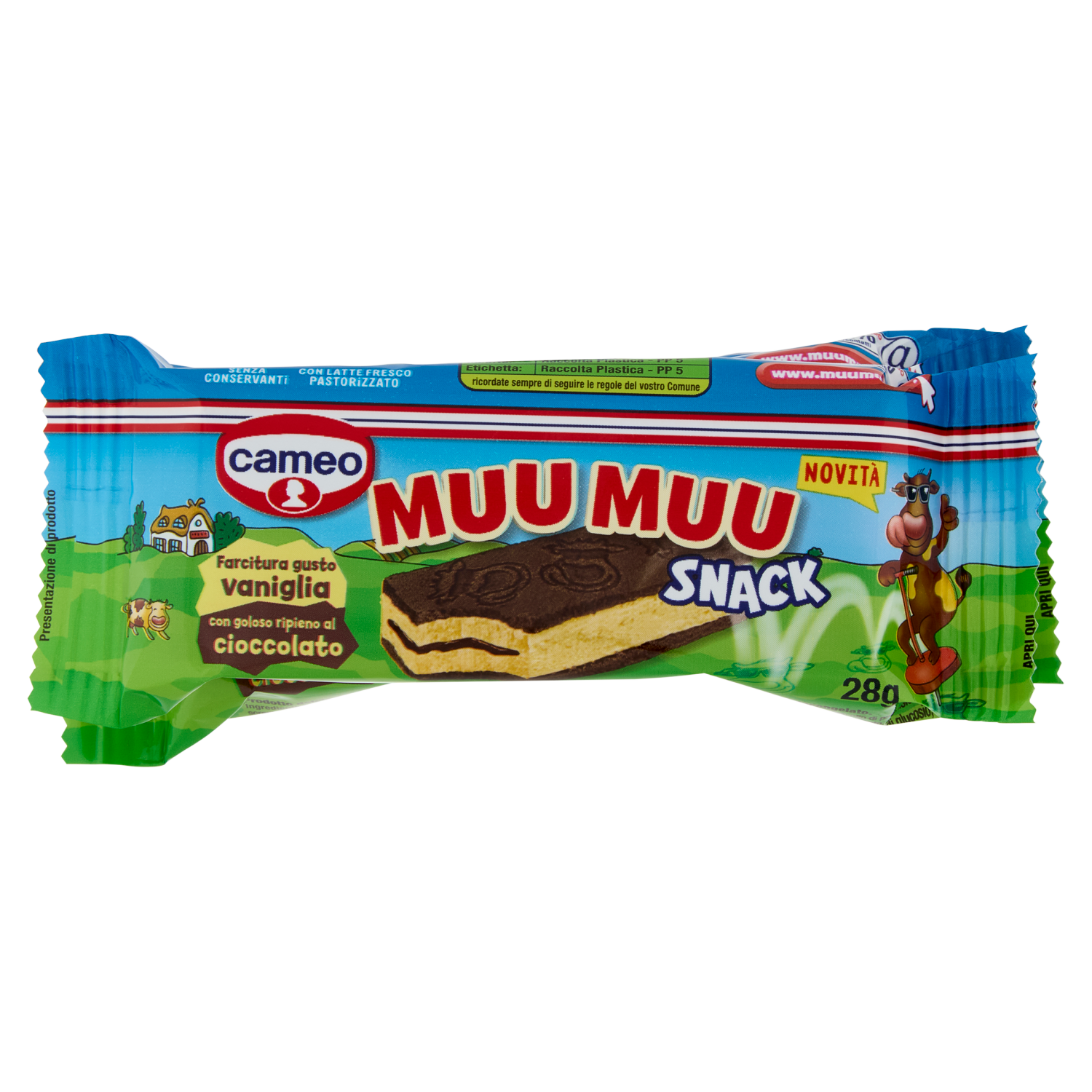cameo Muu Muu Snack Farcitura gusto vaniglia con goloso ripieno al cioccolato 4 x 28 g