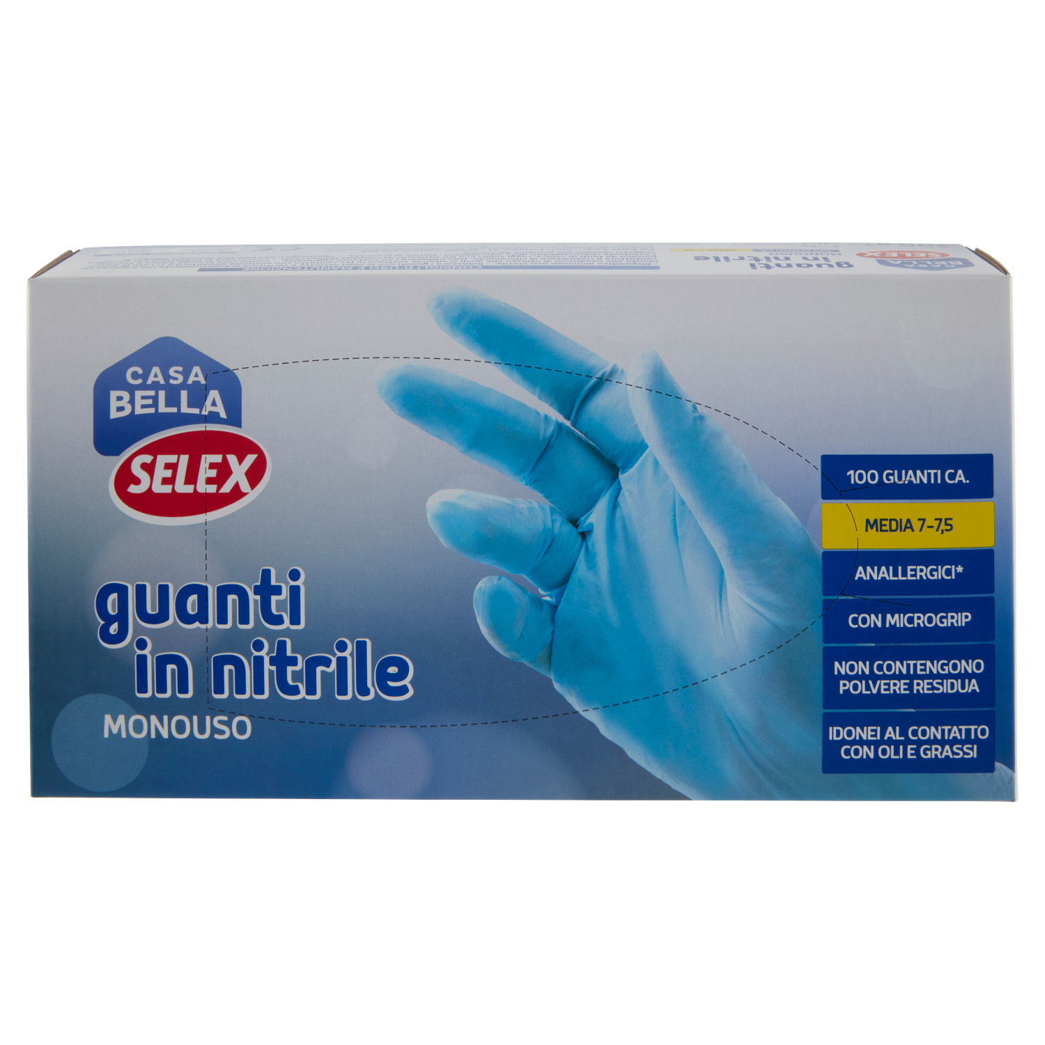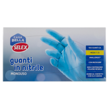 Selex Casa Bella Guanti Monouso in Nitrile Misura Media (7-7,5) Dispenser 100 pezzi