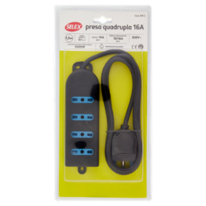 Selex Presa Multipla 4 Uscite 10/16A(Ita) + Spina 16A e Cavo Nero 1,5m