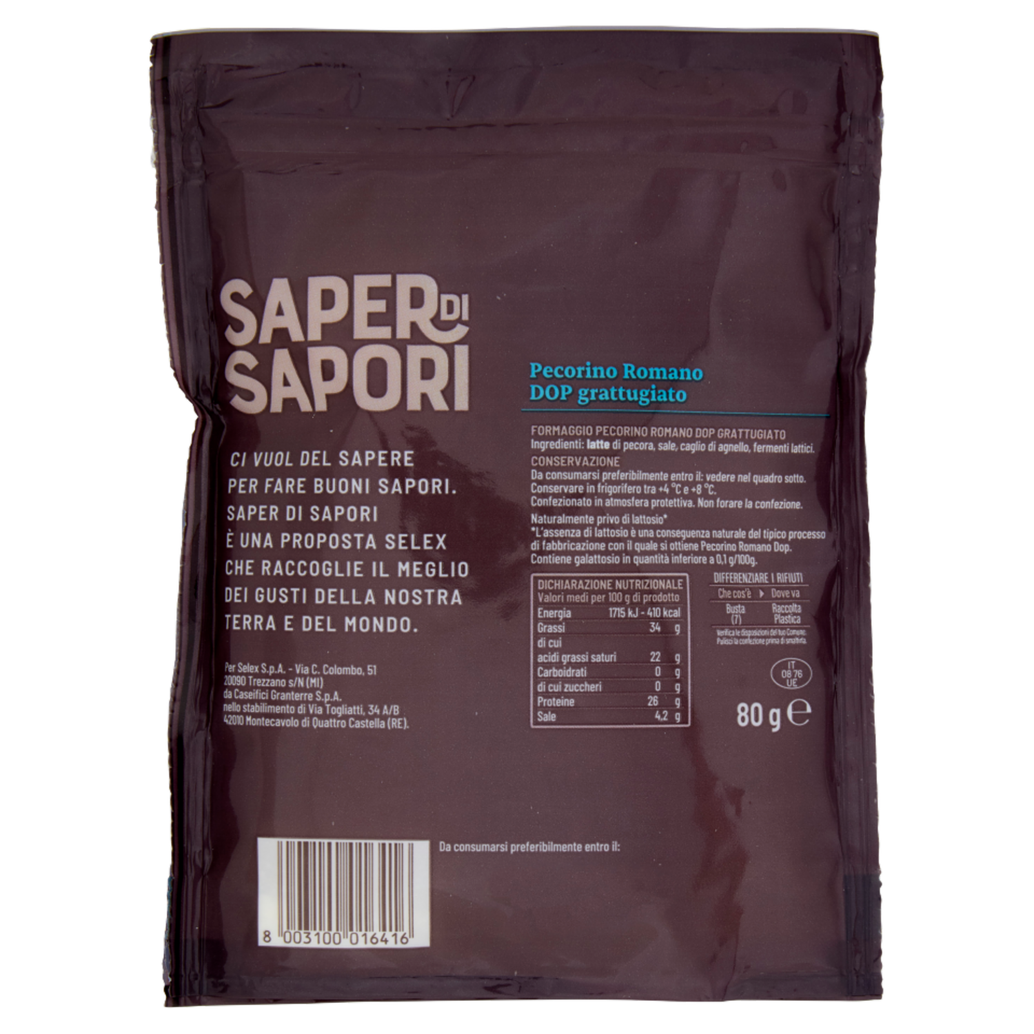 Selex Saper di Sapori Pecorino Romano D.O.P. Grattugiato 80 g