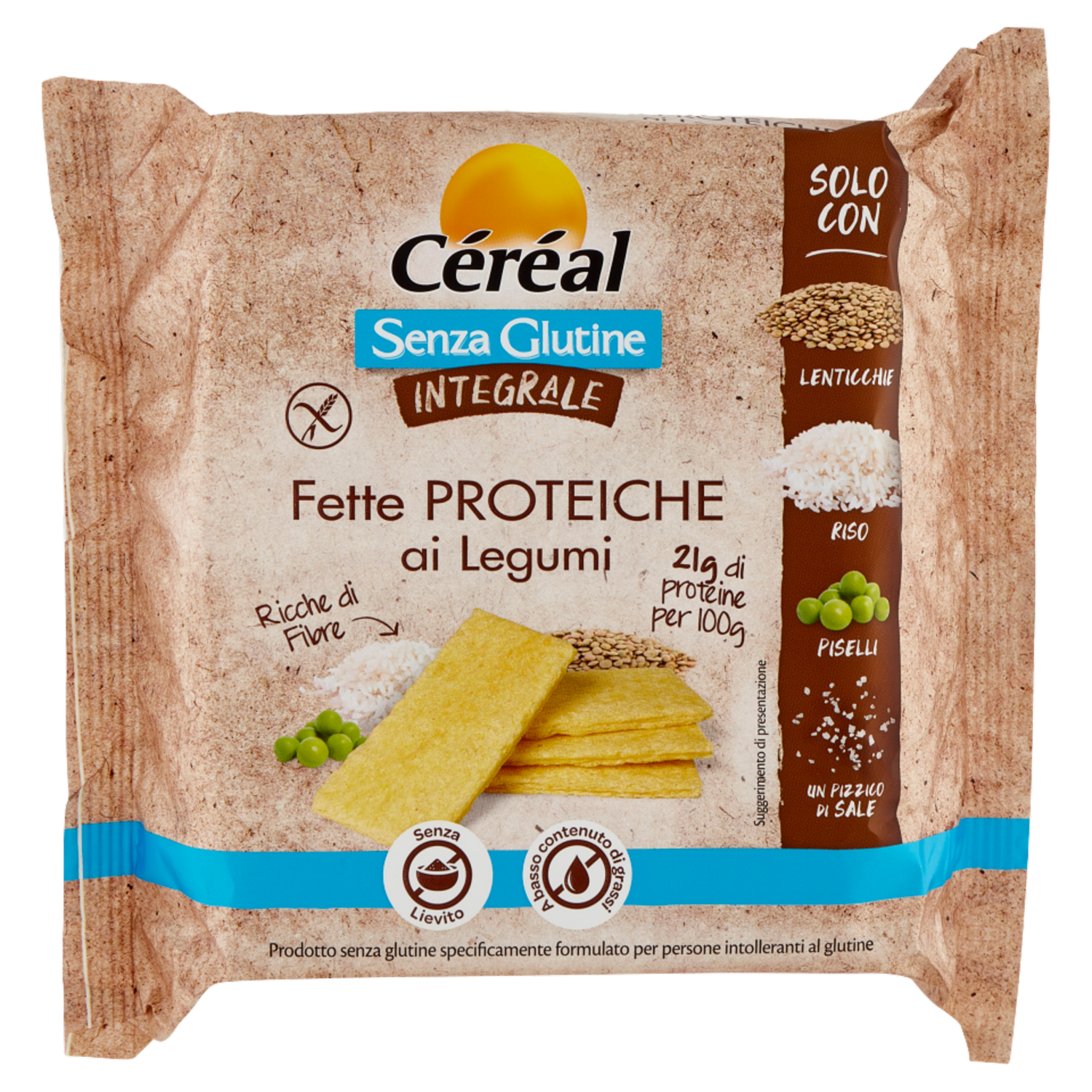 Céréal, Fette Proteiche ai Legumi, Integrali, Senza Glutine, Senza Lievito, Ricche di Fibre - 100 g
