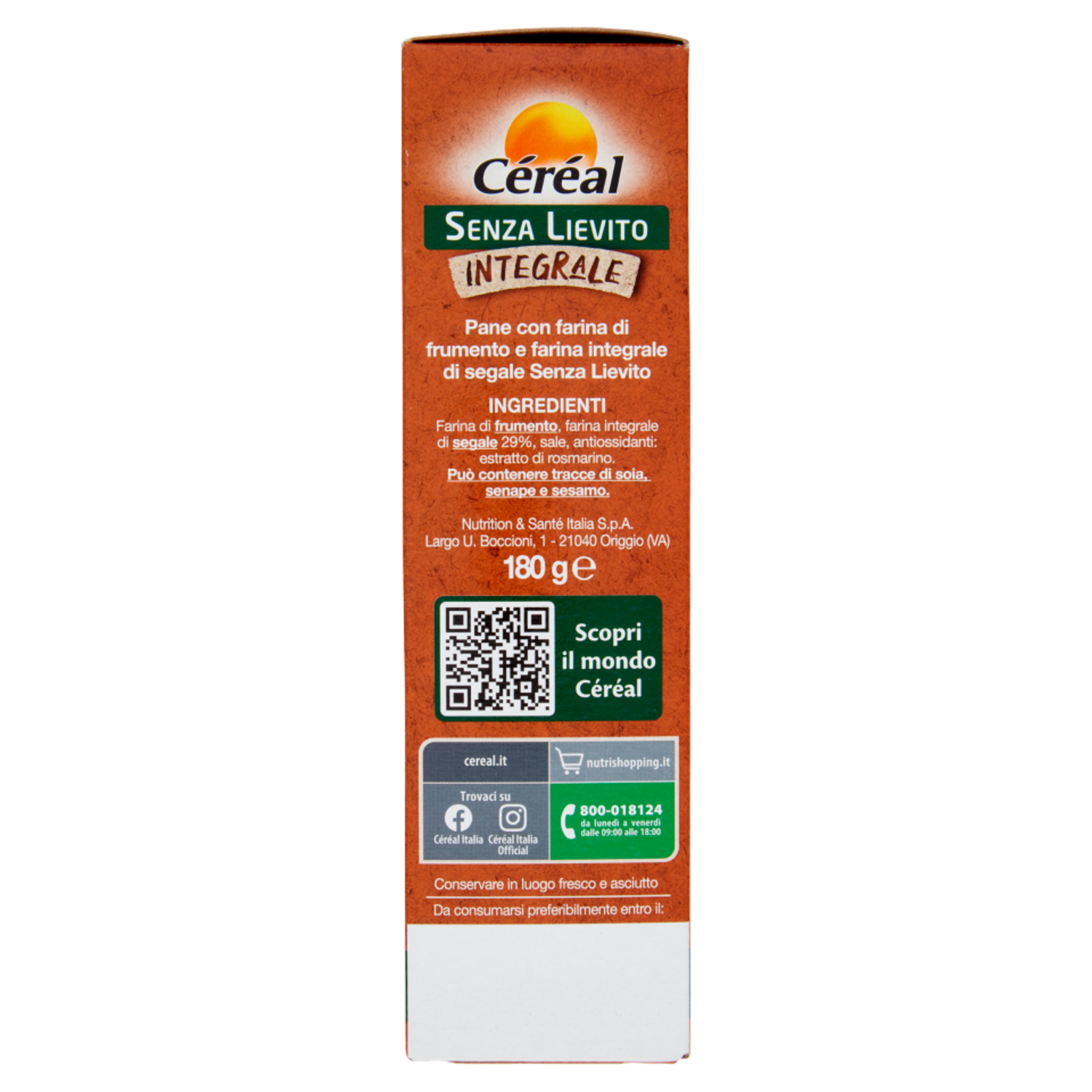 Céréal Senza Lievito Integrale Pane Azzimo con farina integrale di segale - 180 g